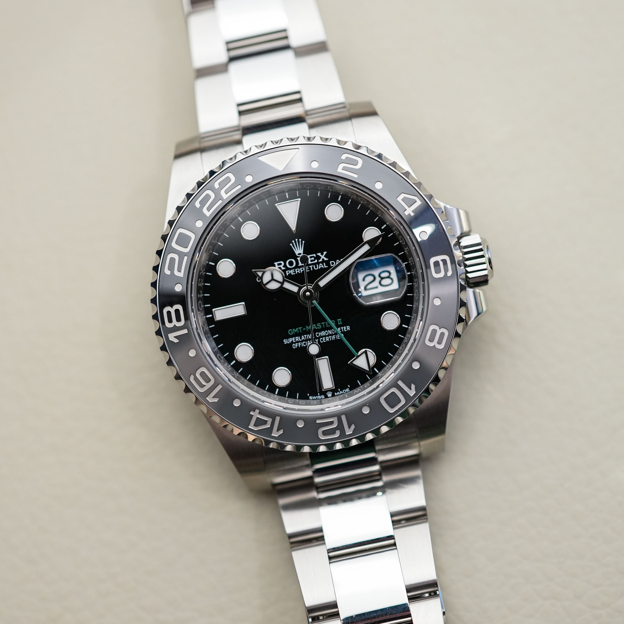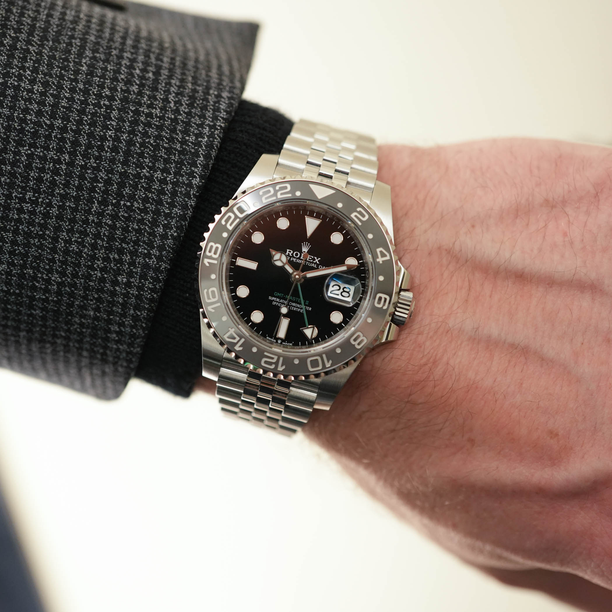 A very monochrome watch, with discreet tones, save for the small touches of green on the dial. No design or technical evolutions otherwise and available either on Jubilee or Oyster bracelet.