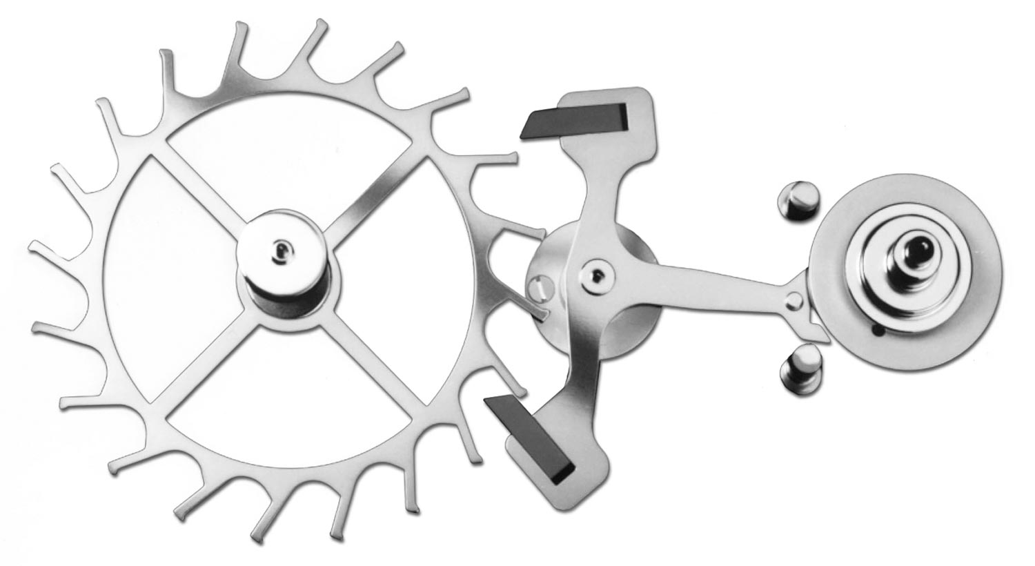 In the Swiss lever escapement, both pallets have to perform the lock/unlock and impulse functions. This implies a great deal of friction on the teeth of the escape wheel and the pallets of the fork, and thus the need for lubrication. As mentioned, the main problem comes from the stability of oils, which deteriorate over time compromising the rate of the watch. In addition to that, friction has an impact on the efficiency of the movement, which consumes more energy.