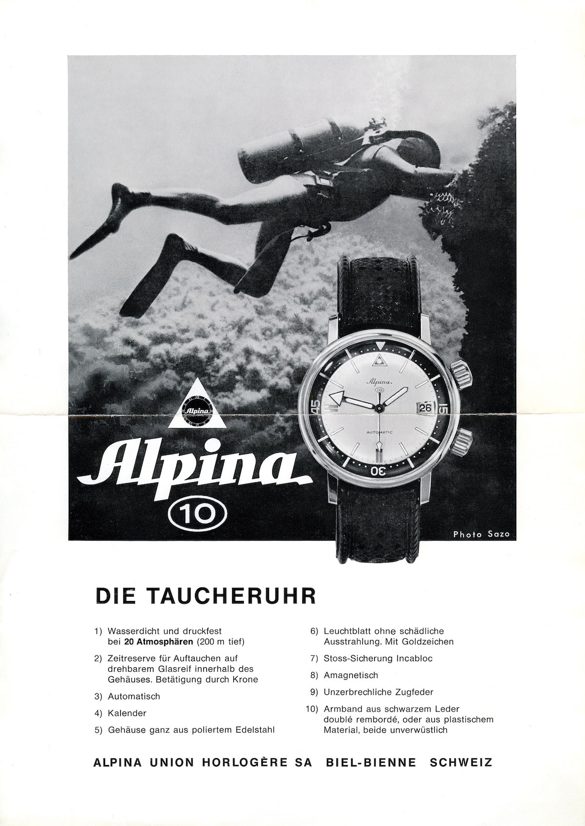 Alpina is a long-lasting brand, founded in 1883 and part of Frédérique Constant since 2002. While the latter has long focused on accessible luxury and elegant watches, Alpina has been positioned as the sporty side of the group, which goes well with the brand’s history – which is mostly known for the Alpina 4 from 1938, one of the brands signature collections. In 1967, Alpina introduced its landmark diver watch, the Alpina 10 (also referred to as the Alpina 10 Seastrong in 1969), a professional diving watch with 200m water-resistance and an automatic calibre. Like many dive watches of the period, the Seastrong had a super compressor case with two crowns – one to adjust the internal bezel, the other to adjust the movement. The case, constructed by Ervin Piquerez SA (EPSA), was water-resistant to 200 metres thanks to its patented spring mechanism built into the screw-down caseback that made the watch more watertight the deeper it went.