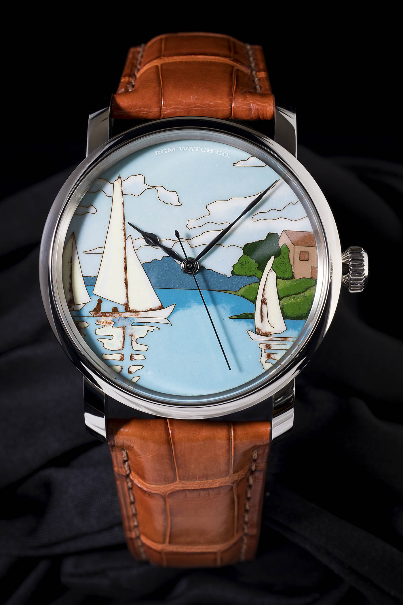 Those already familiar with Roland Murphy and RGM Watch Company may be a bit surprised by the newest Artwork watches he has just released. RGM watches – crafted in Mt. Joy, PA – are typically very classic styles with clean dials beautifully engine-turned / guilloché or enamelled. Some RGM watches feature apertures for sneak peeks at a moon phase or are openworked to allow viewing of a portion of the movement. The newest RGM Art watches take that classic watchmaking style to new heights by offering hand-painted artistic dials.