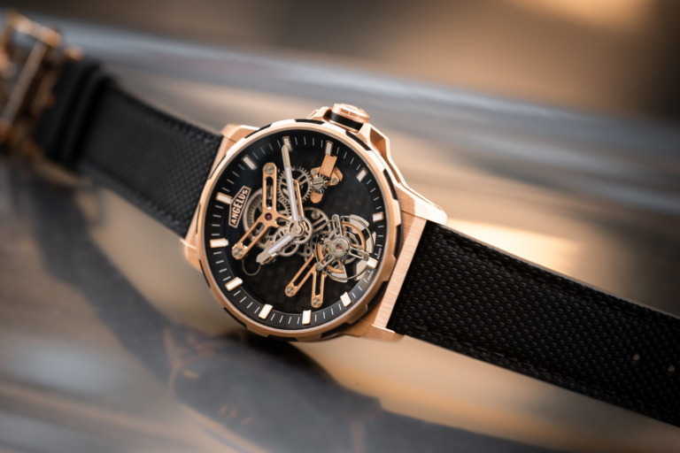 At the heart of the watch is the calibre A-310, an evolution of the modular A-300 base movement. It is built around a series of circles – around the barrel, the Tourbillon, the seconds, on both sides of the movement. This hand-wound calibre features a large, fast-beating (4hz) flying tourbillon and a comfortable 60-hour power reserve. It is nicely and modernly finished with sunray-brushed, chamfered and polished surfaces.