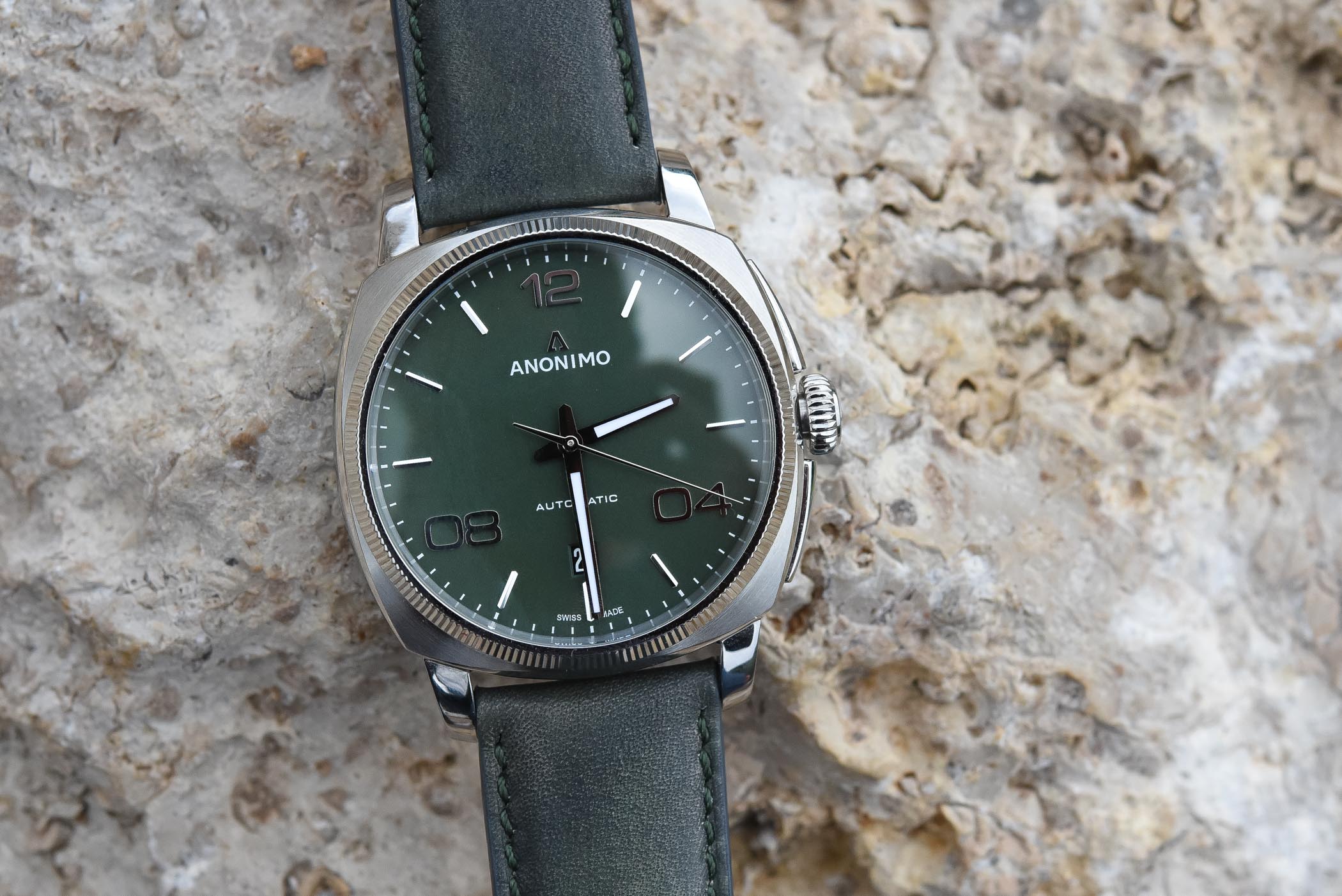 The price of this Anonimo Epurato Verde Natura is the same as other steel versions, meaning CHF 2,290. More details on the brand’s website www.anonimo.com.