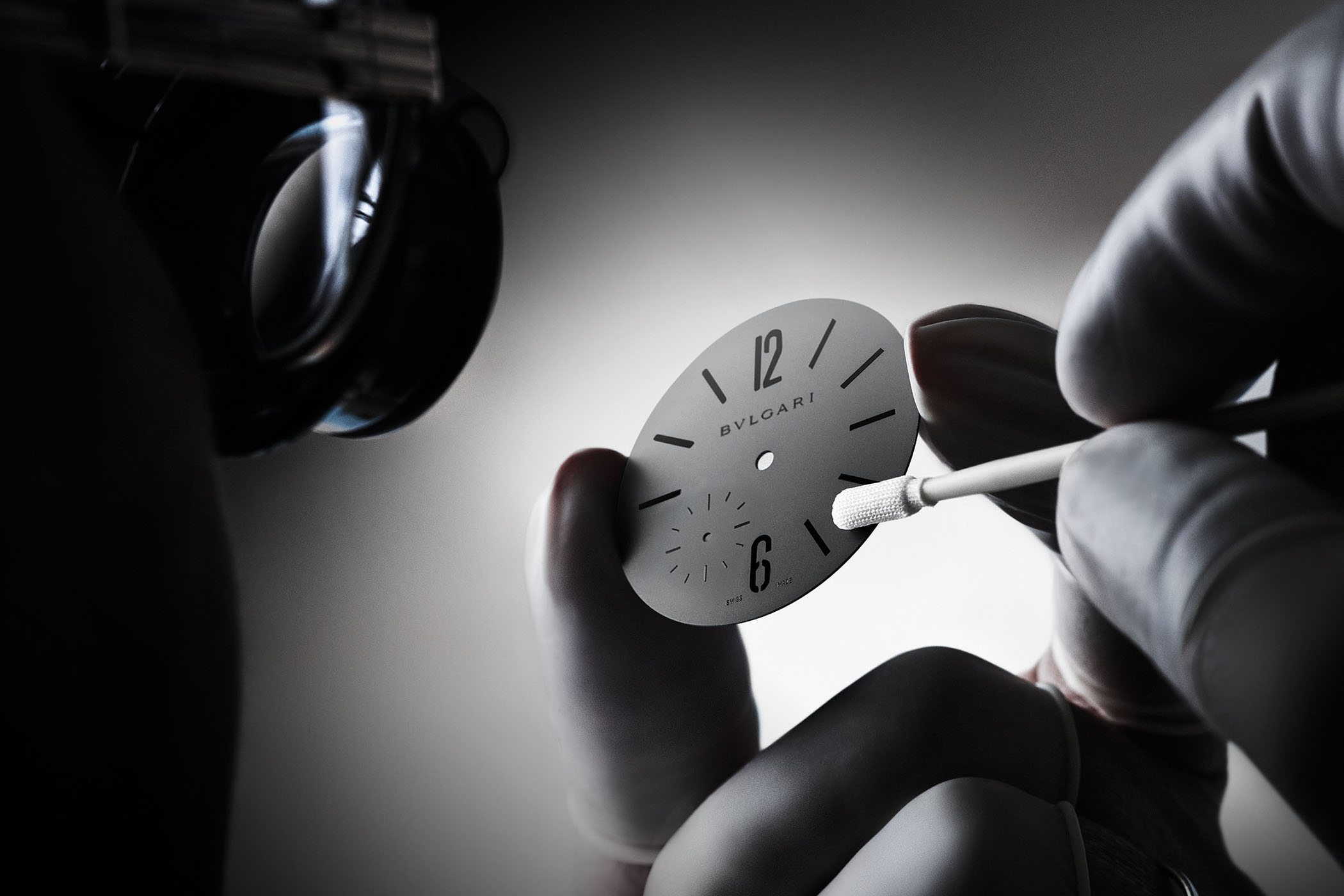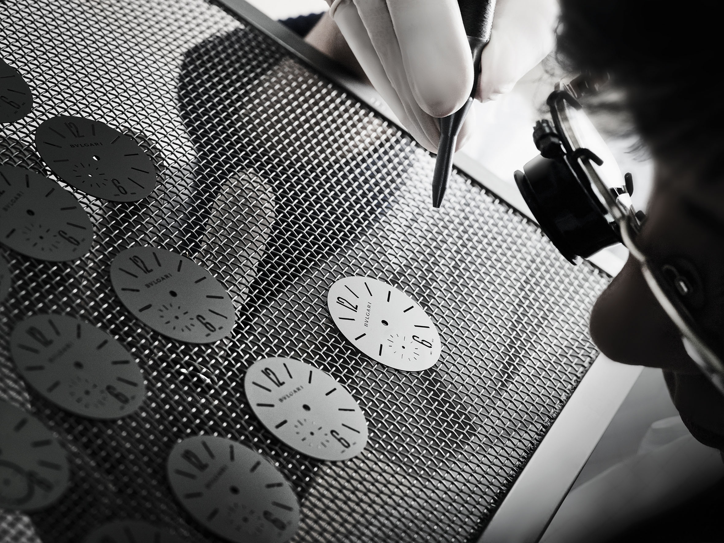 The industrial organization of Bvlgari watches started in the 1990s. The acquisition of Daniel Roth and Gerald Genta was instrumental in laying the foundations of our watchmaking expertise. This was complemented by the progressive acquisition of production entities for cases, bracelets and dials. Today we have a fully integrated manufacturing organization with a staff of 400 across three production sites in Switzerland: Le Sentier for movements, Saignelégier for ‘habillage’ (case and dials), and Neuchâtel for final assembly. We master over 30 crafts in-house. That’s quite unique. This allows us to create ‘serial production’ watches but also unique pieces. This requires know-how and flexibility. This is obtained through investment in facilities, in tooling but also in people. To enhance skill and knowledge, you need to invest in people, help them improve their strengths and acquire new competences.