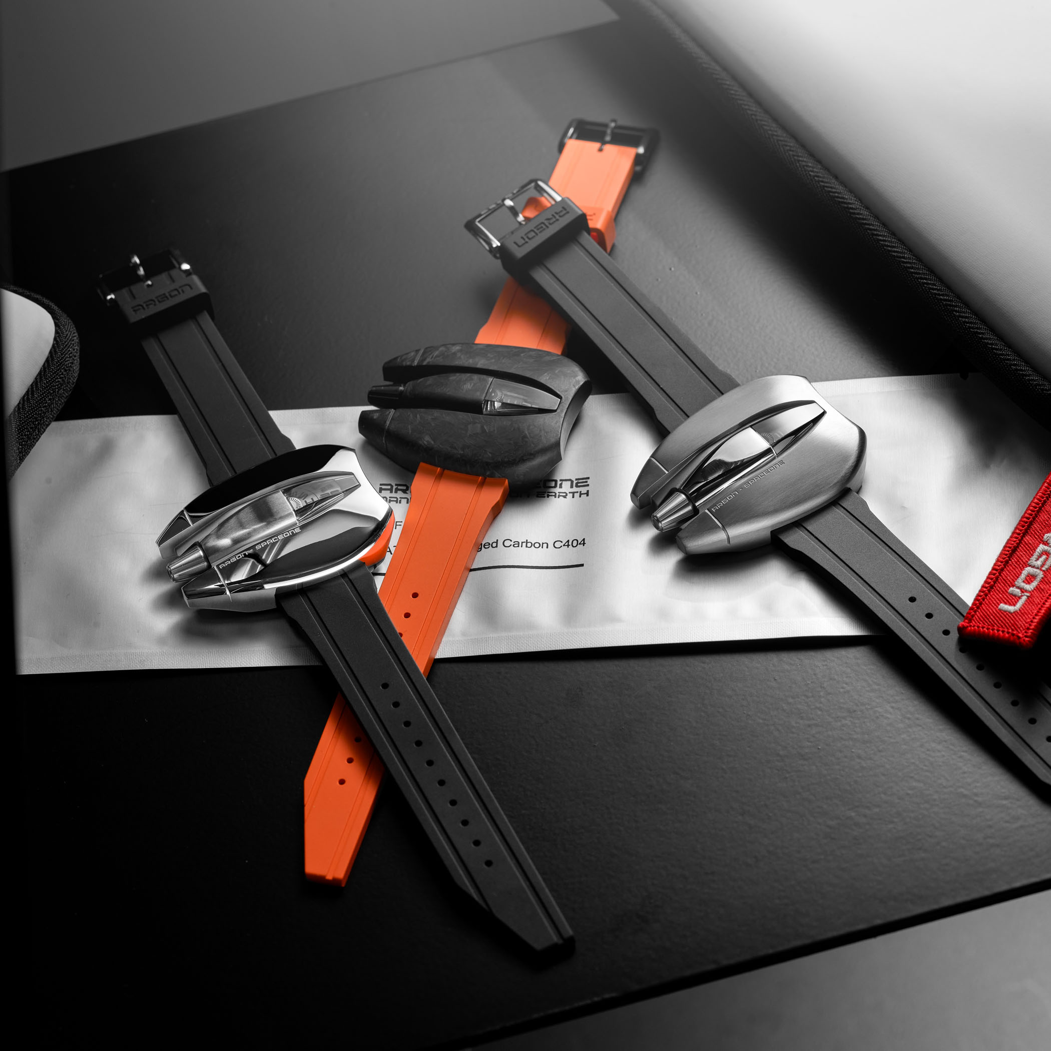 Each version of the Argon SpaceOne is delivered with two 22/18mm FKM rubber straps, one in black, and one in orange. All watches are delivered in a packaging inspired by the vacuum system used to pack food for space travel.