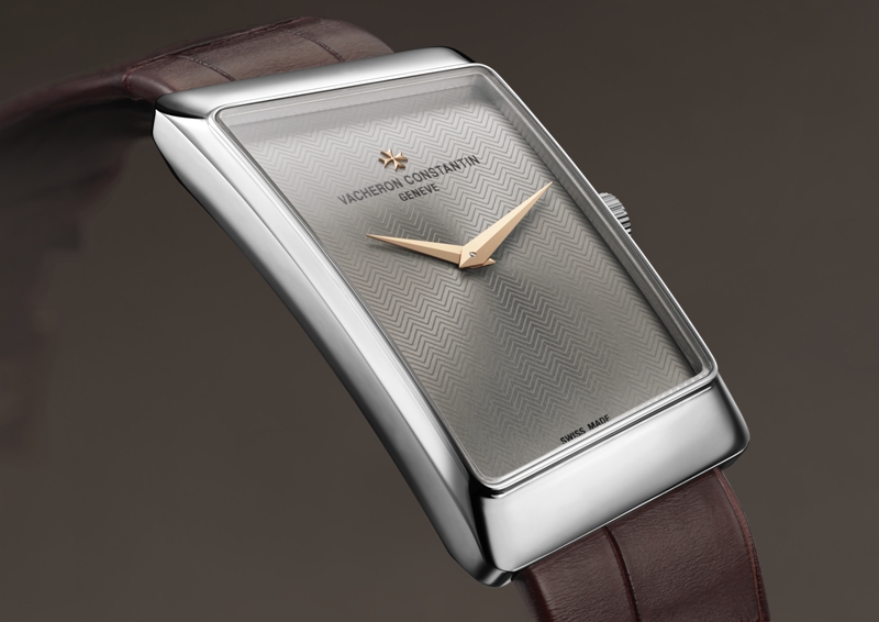 The non-limited version, is shown in the first two photos, features a grey dial with chevron motiv. The other version, unveiled for the opening of Vacheron Constantin’s new Paris shop at 2 Rue de la Paix, is offered in a limited edition of 40 pieces as a boutique exclusive. It features a silvered dial and comes on a glossy black strap. Engraved in the case back, just below the Prestige de la France coat of arms, is the limited edition number.