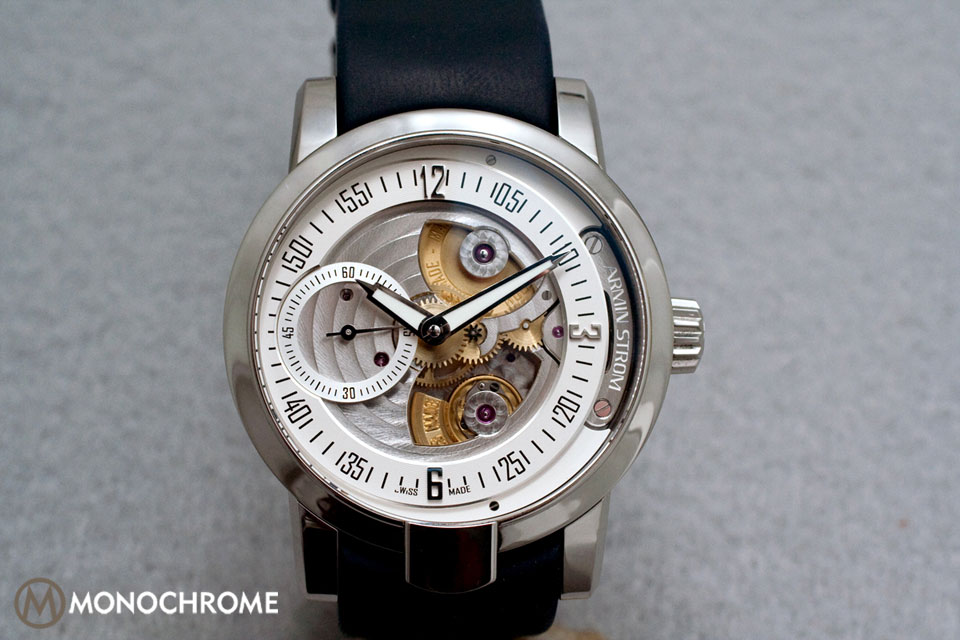 - The white lettering of the Armin Strom badge gets lost and needs a bolder color like navy blue