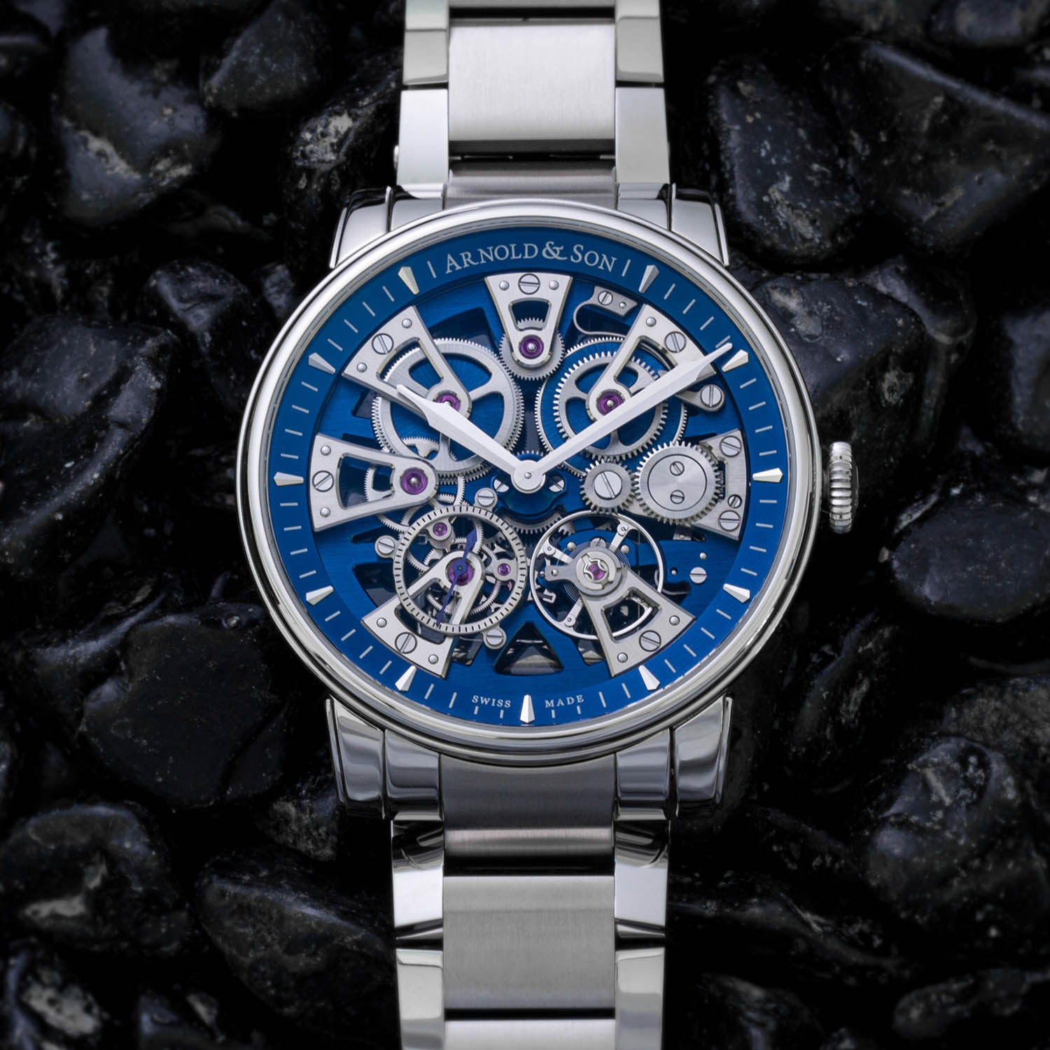 The case, measuring 41.5mm in diameter, remains fairly thin at 8.73mm in height. The design, with an almost absent bezel, is meant to give a large view on the movement – clearly the most important part of this model. It reutilizes the classic shape seen on previous editions, with nicely designed lugs equipped with a brushed plaquette on top. The 30m water-resistant certainly isn’t the best, but diving isn’t its vocation anyway. Most importantly, in addition to a blue rubber strap, Arnold & Son now offers a 3-link stainless steel bracelet with brushed and polished surfaces to the Nebula 41.5 Steel, giving it a far more casual style.