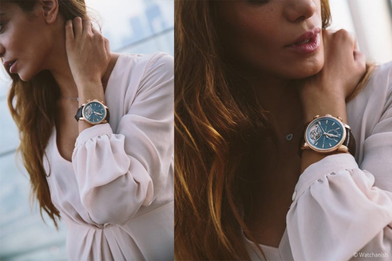 The Golden Wheel comes in a 44mm case made of 18k red gold and a brown alligator strap. It will be a limited edition of 125 timepieces. More details on Arnold & Son official website.