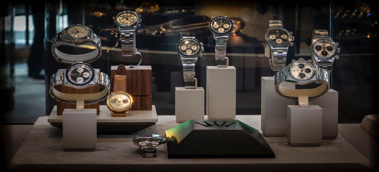 Need an asymmetrical Patek Philippe …they have that. Need a Robin Egg Blue Stella dial Day-Date to go with your turquoise bolo-tie? …they have that. All your friends have started wearing ‘Cosmographs’ and you want to switch over to a Jean-Claude Killy to be different? … they can help. Want an original Bakelite bezel GMT Master? …they have that. With a tropical brown dial??… they have that too.