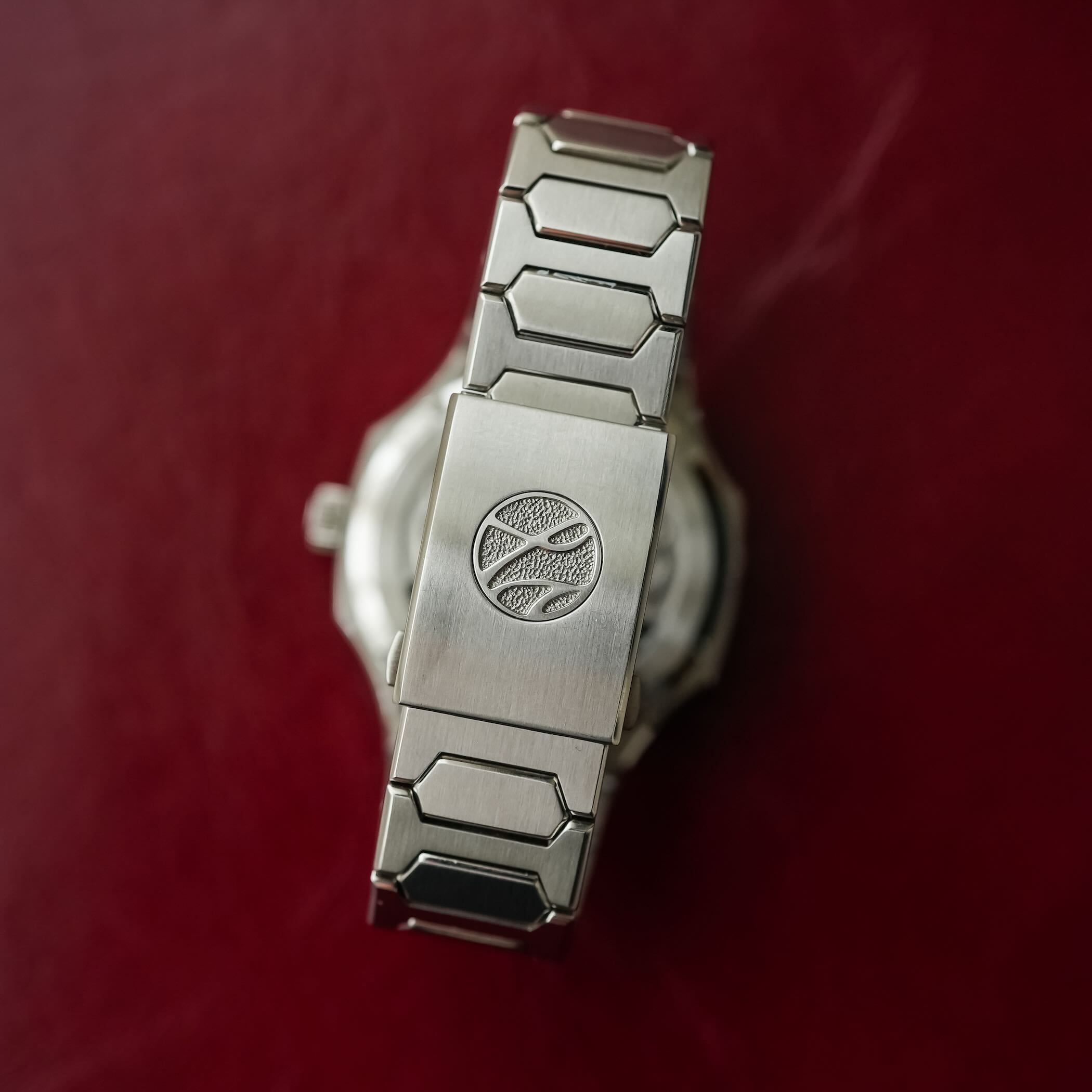 The integrated bracelet is also executed in 904L stainless steel and features finely chamfered links. It tapers from 22mm to 18mm at the clasp and features quick-release spring bars and a proprietary, on-the-fly micro-adjustment.