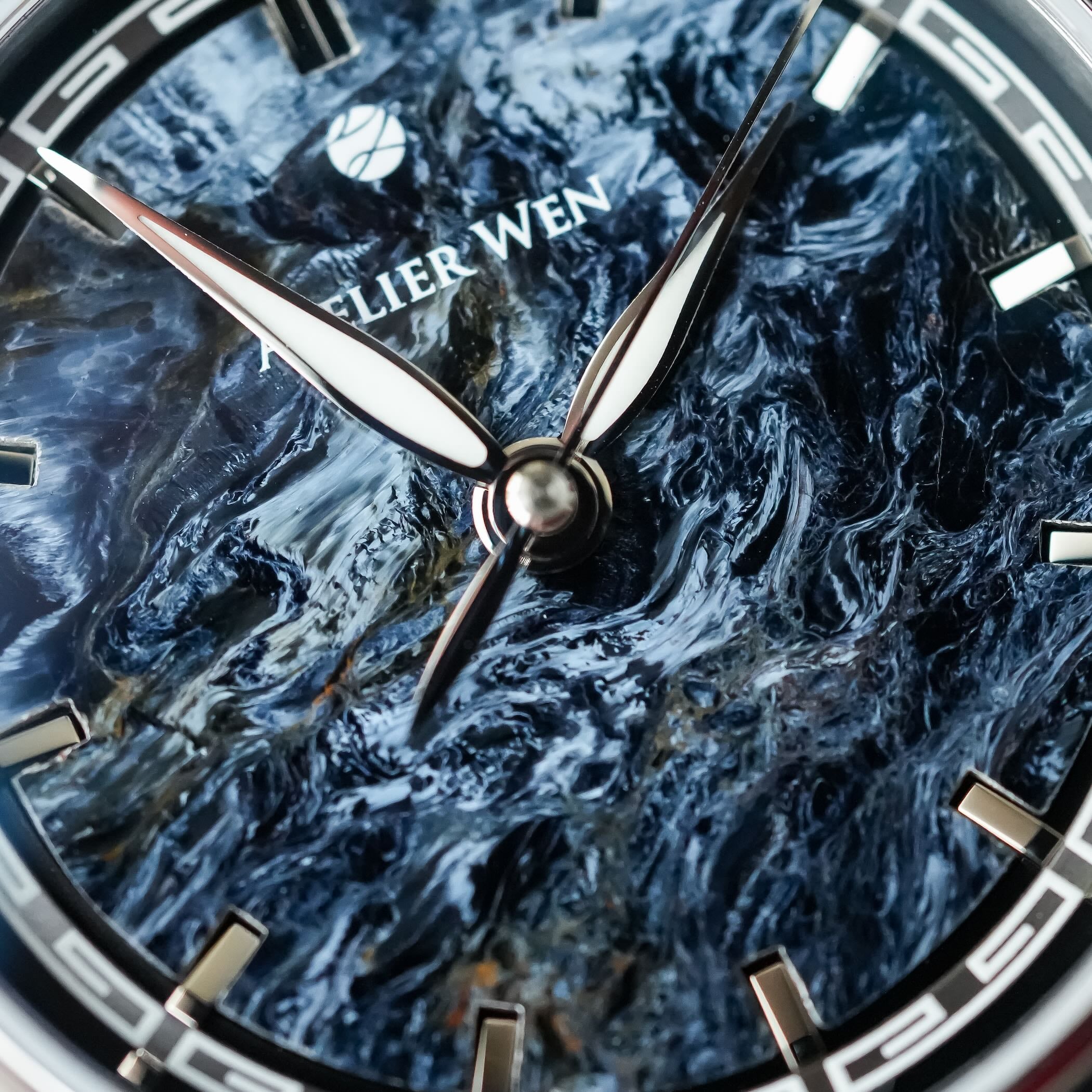The four-layer dial is the main news and the highlight of the Perception (Xuán) edition. With its swirling patterns and deep blue-black tones shot through with gold and brown, the natural pietersite was chosen to repeat the sensation of movement and layered composition of classical mountain-water gardens. Working with pietersite is complex due to its brittleness: the twelve apertures for the applied hour markers are wire-cut by hand in Zhejiang, before polishing in Guangdong. The dial offers depth, motion and a distinctly organic character, framed by a chapter ring featuring a Chinese huiwen pattern rendered in Super-LumiNova.