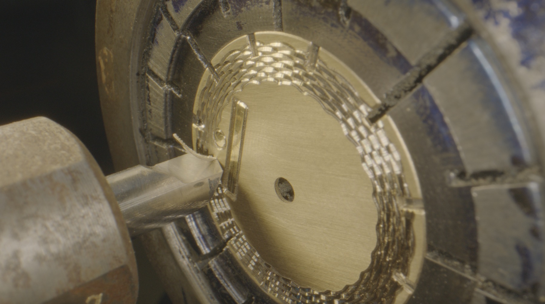 The Atelier Wen Perception dial is traditionally executed using a hand-controlled rose engine. It takes up to eight hours to create the pattern on a single plate, resulting in a dial with great depth and texture. The pattern is called Sunmao (mortise and tenon) and has a 4-layer structure that increases in size from the central axis to the periphery. Even though the pattern is a classic of the guilloché technique, it has a solid sense of Chinese identity.