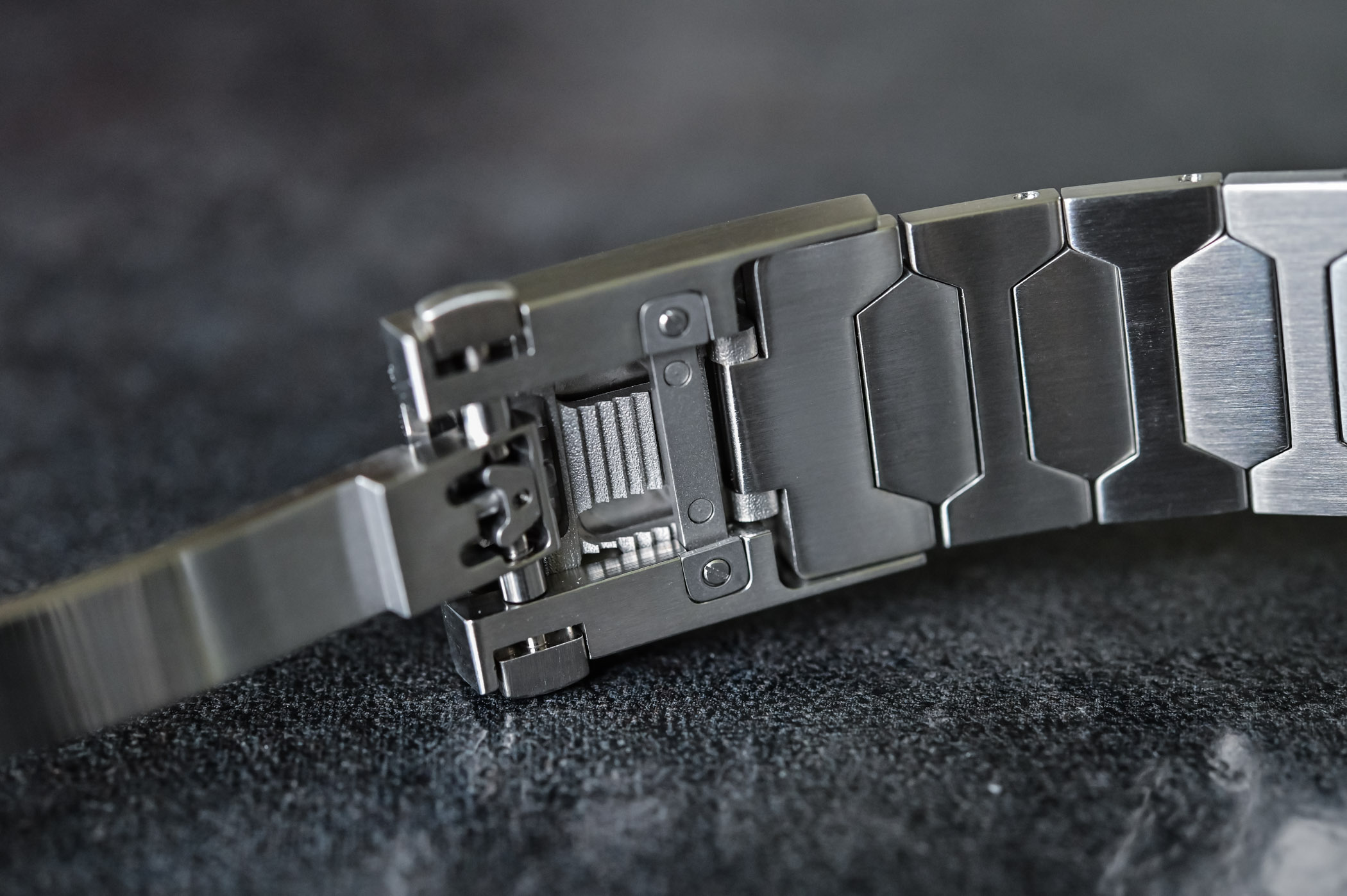 The bracelet fitted to the Atelier Wen Perception is another impressive element. Once again, it is made of 904L steel and is finished to high standards, combining vertically brushed surfaces and polished bevels on the edges. The folding clasp is not to be overlooked, mainly because it is fitted with a clever, easy-to-operate micro-adjustment system. Pressing the brand’s logo allows extending the length by about 1cm – a rare feature in this price range that demonstrates the attention to detail.