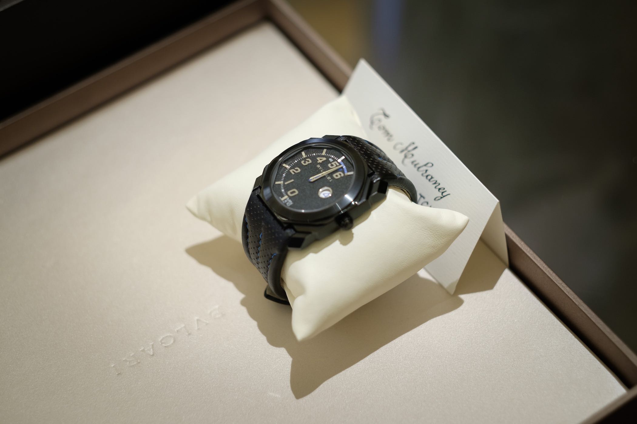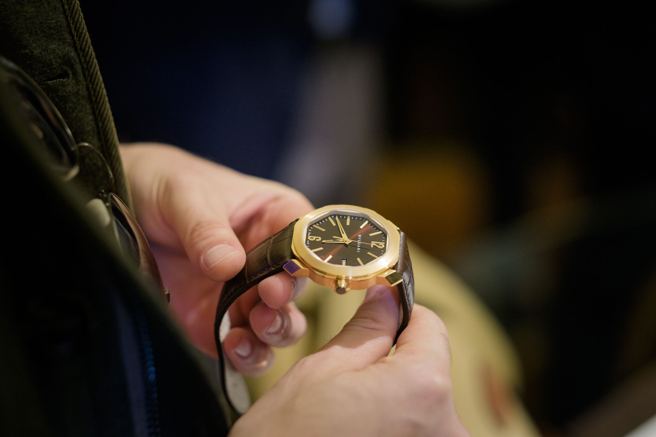 After having a look around the men’s watch room and ogling Bulgari’s various collections of luxury watches, we were invited upstairs for a cocktail and a special surprise. Each of us would be given our very own Bulgari watch to wear for the evening. Mine was the new Octo Retro Maserati GranSport (check out Brice’s hands-on review of this watch here), although, as often is the case when a group of watch lovers come together, I ended up trading it multiple times throughout the night for the chance to try on some of the other models on offer. It was then time for the second surprise of the evening.