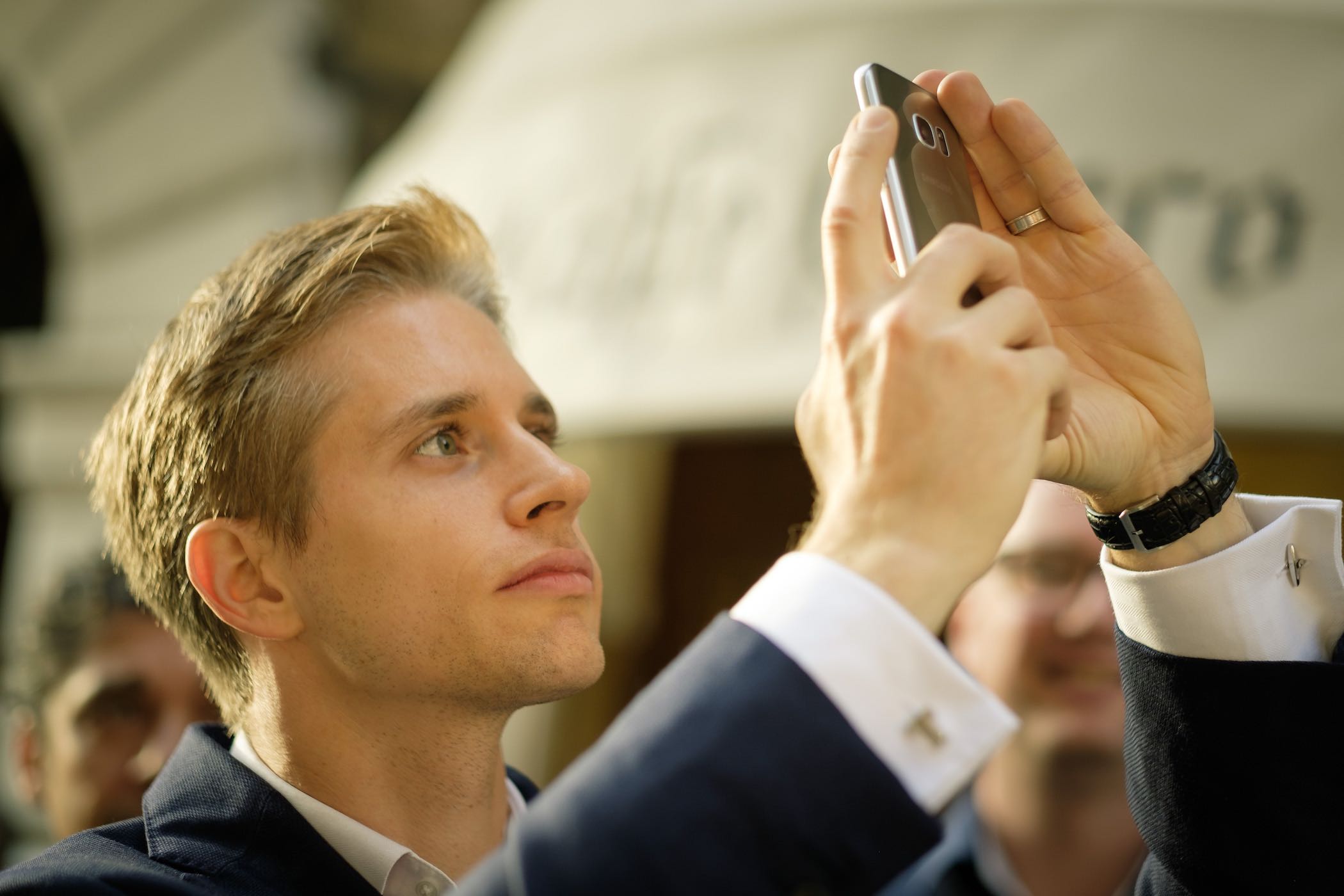 The guests of the B. Dinner in front of Bulgari’s boutique in Rome