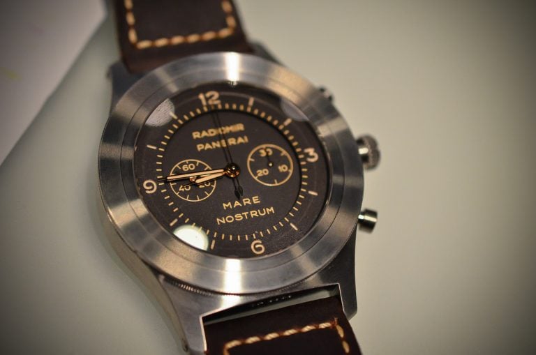 In 1943 Panerai developed the Mare Nostrum for deck officers and it was their first chronograph. Allegedly only a couple prototypes had been made before the Allied invasion (in Italy) prevented full scale production. Like all the other Panerais, the Mare Nostrum has become a timeless classic. So it was not strange that Panerai made a re-issue of this iconic watch.
