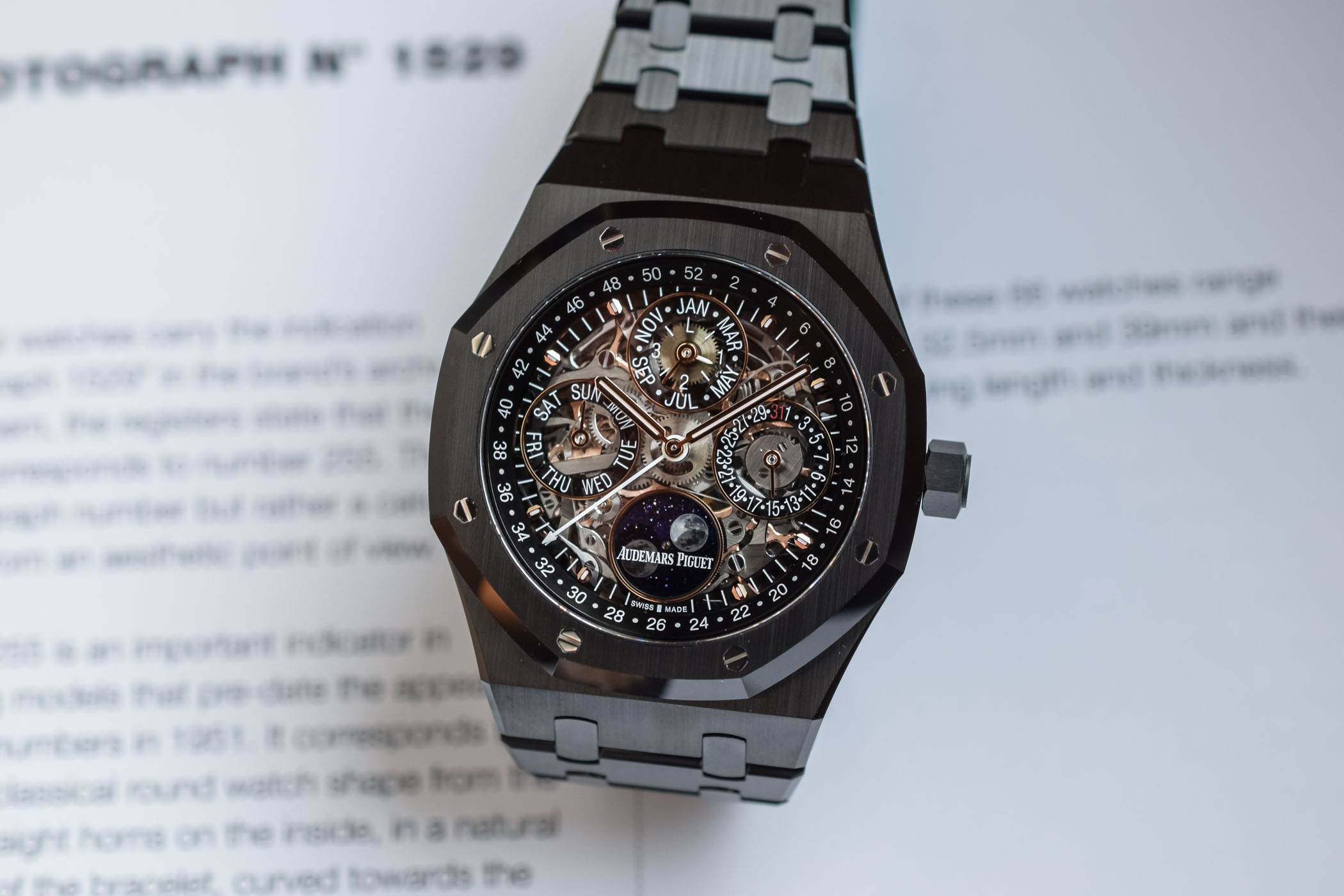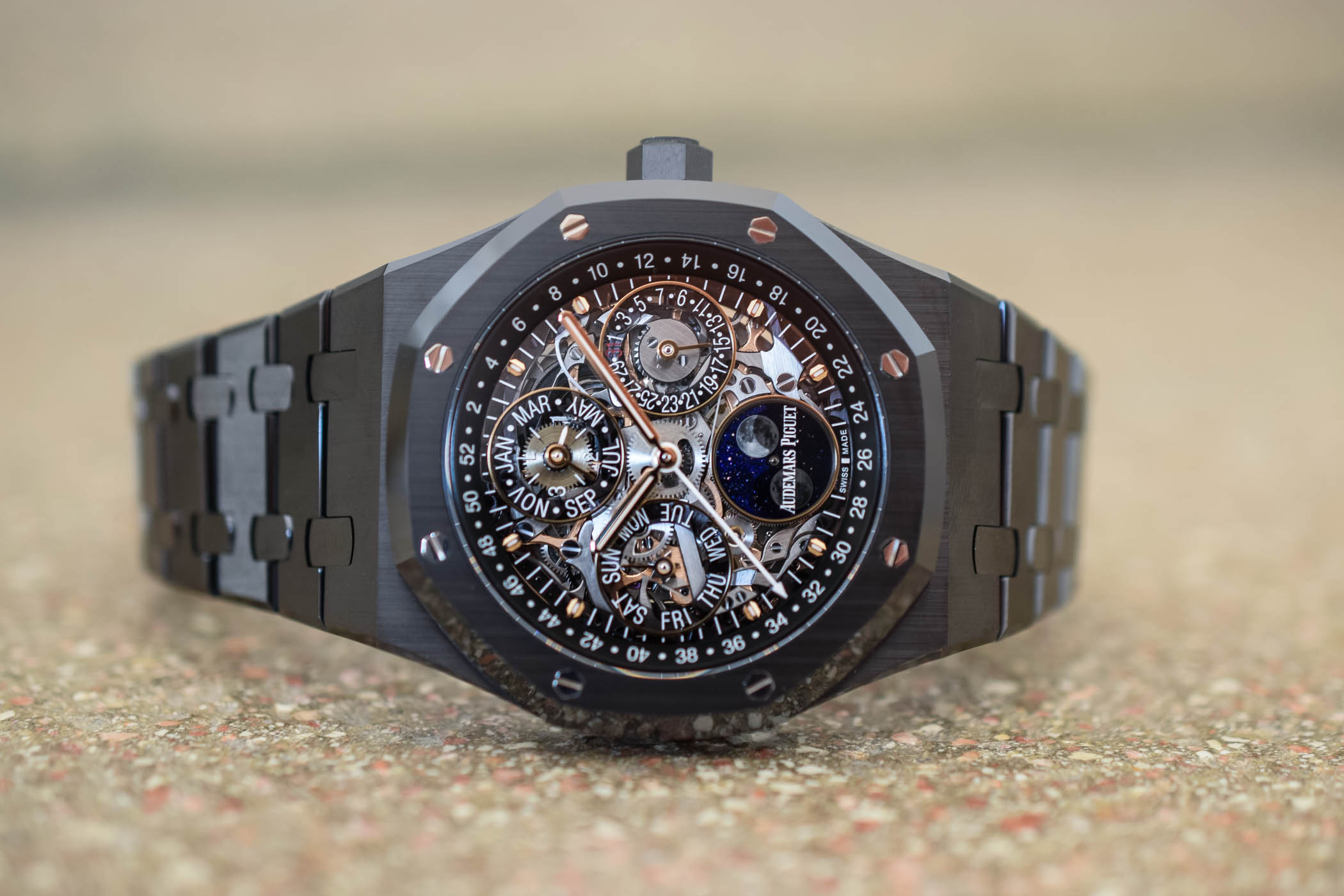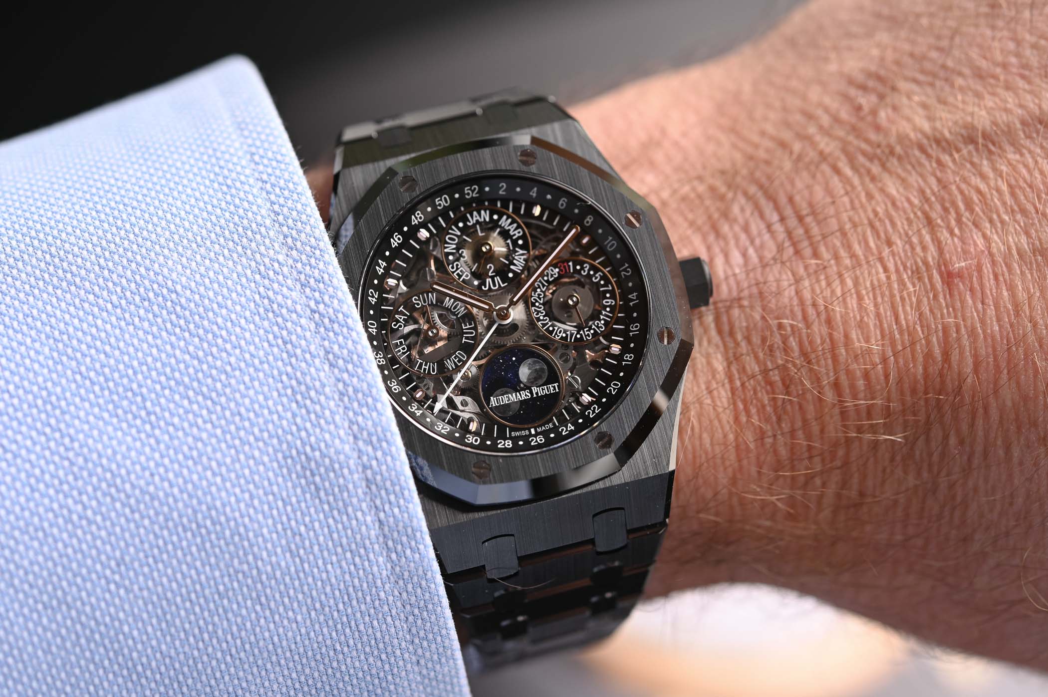 The bold and desirable full-black ceramic Royal Oak QP, now with high-end skeleton movement.