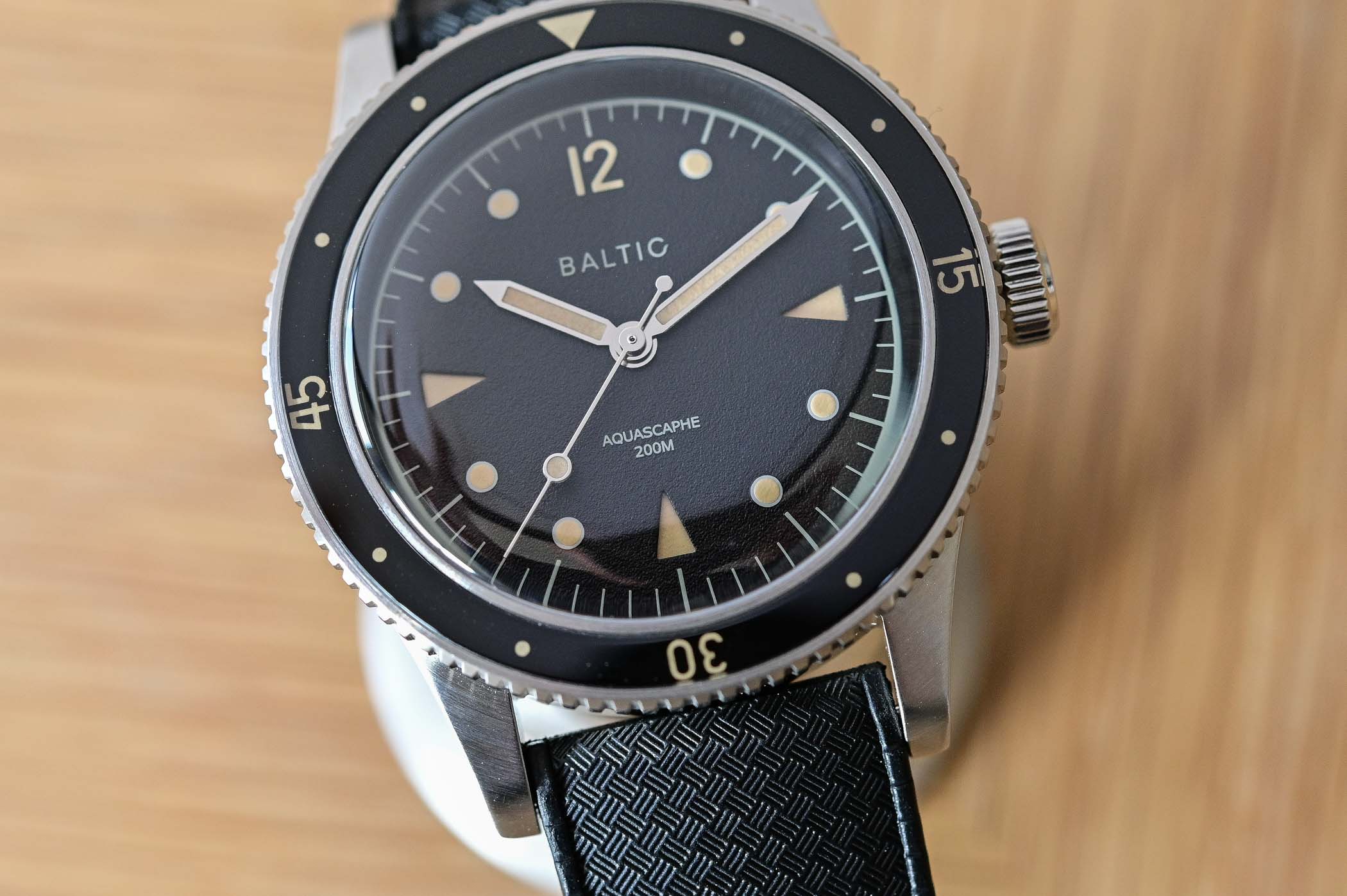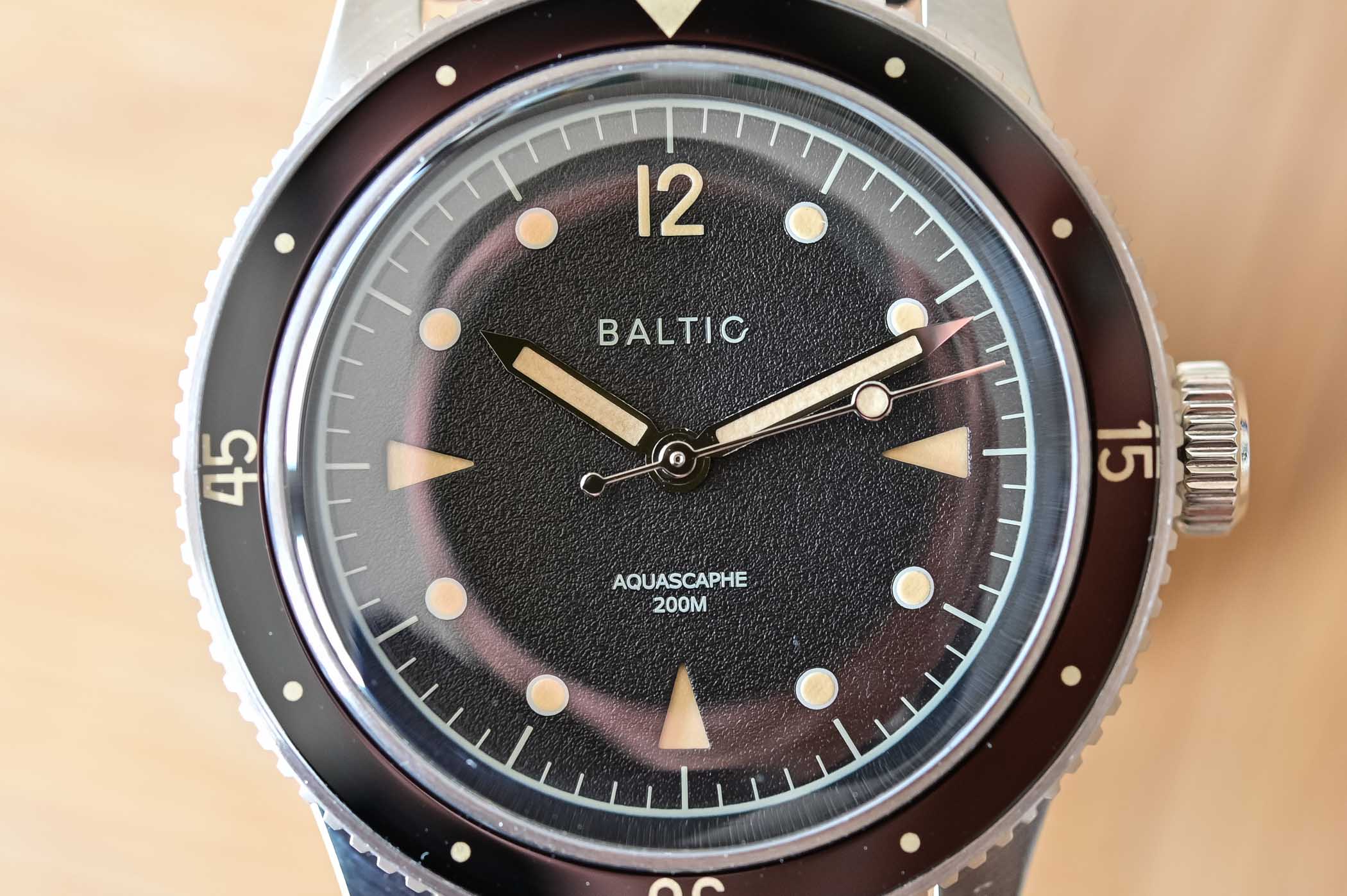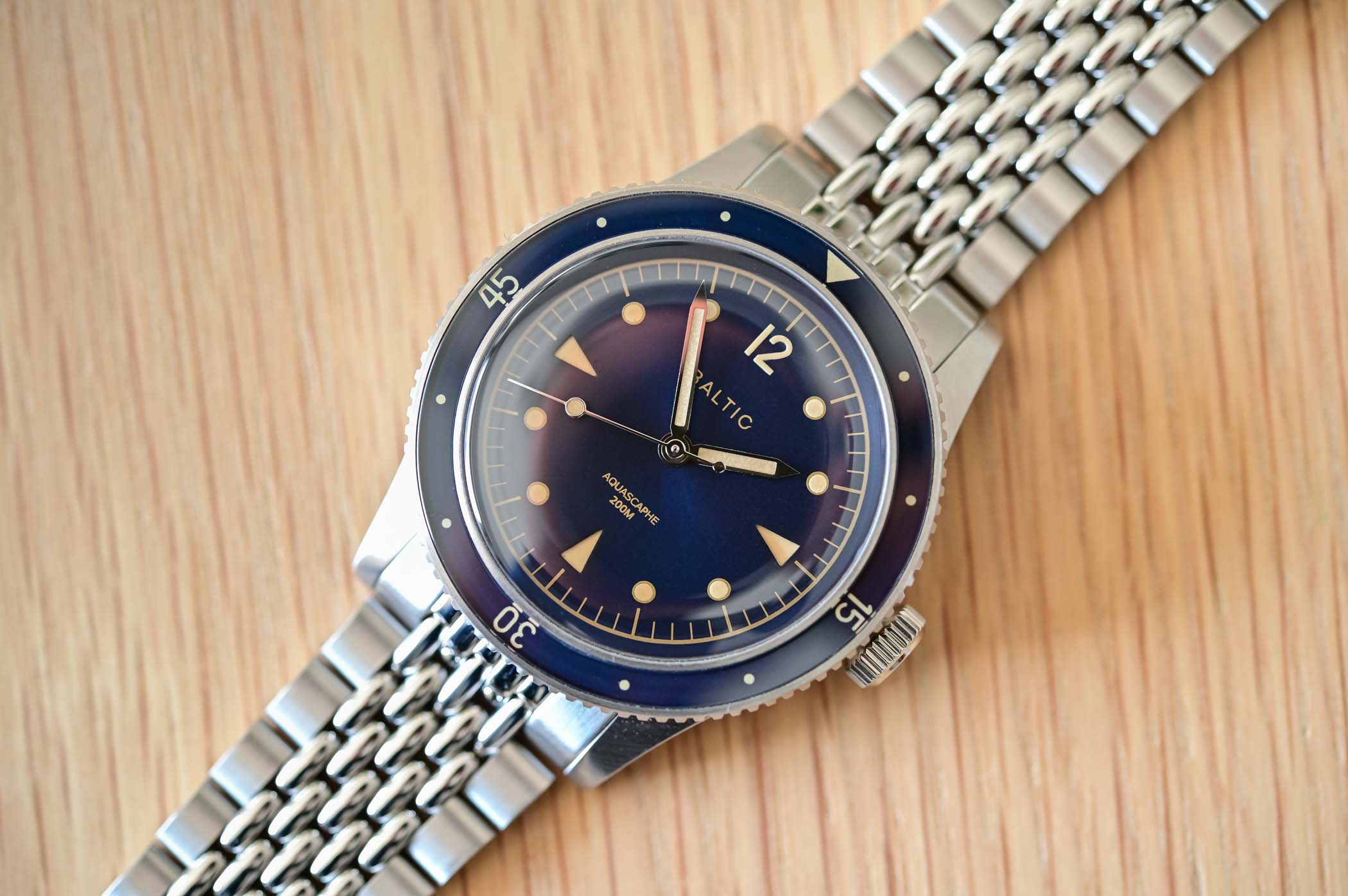 Just like the inaugural collection, the Baltic Aquascaphe Diver doesn’t hide its vintage inspiration. It has clear references to some of the greatest early dive watches – think Fifty Fathoms or Submariner – but it manages to have an identity of its own. Etienne, as a seasoned collector, is more than familiar with the codes of vintage-inspired watches but also knows that most watch enthusiasts can’t actually access these famed, sought-after models. Baltic is here to give the taste, without the expensive bill.