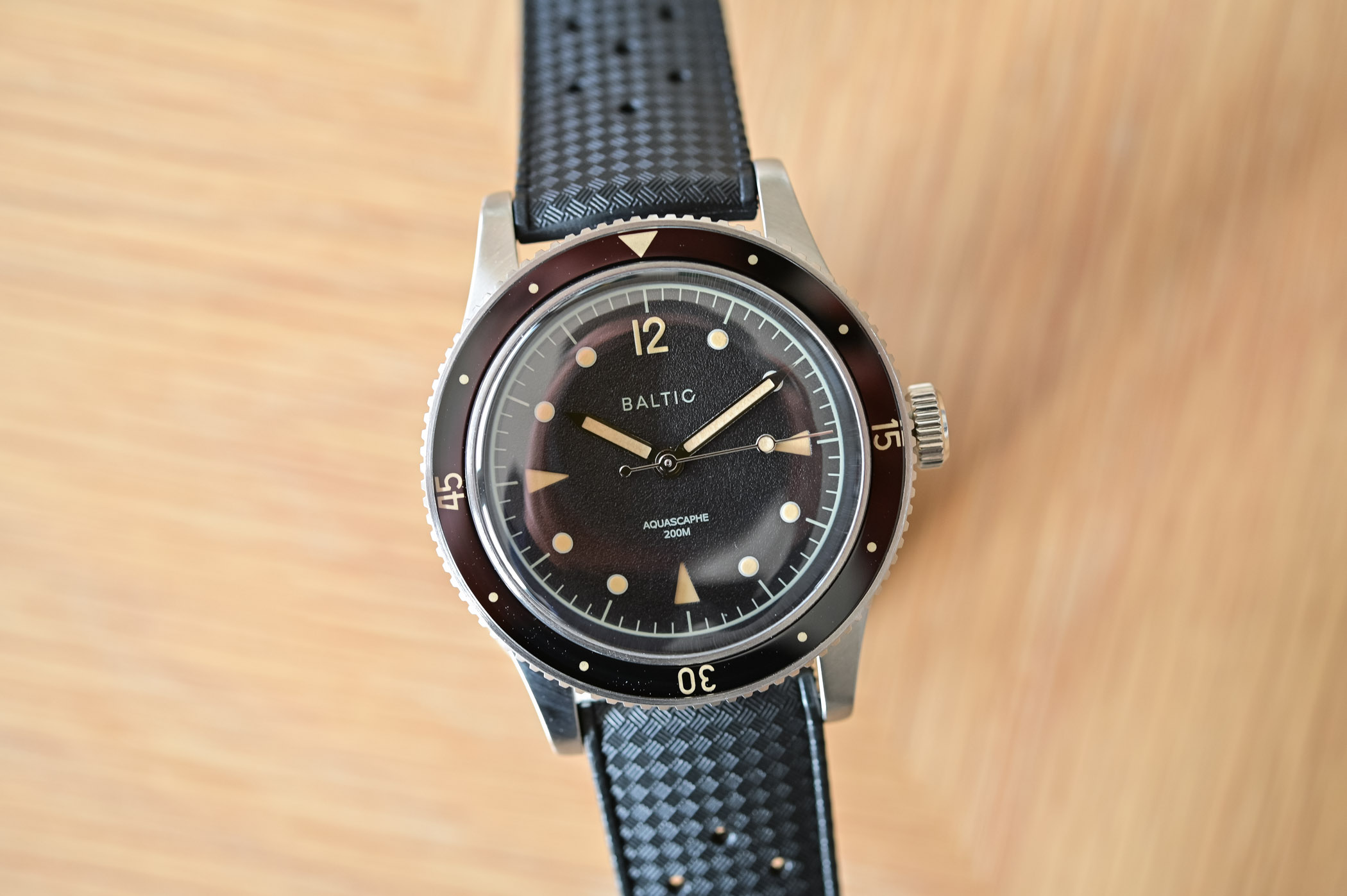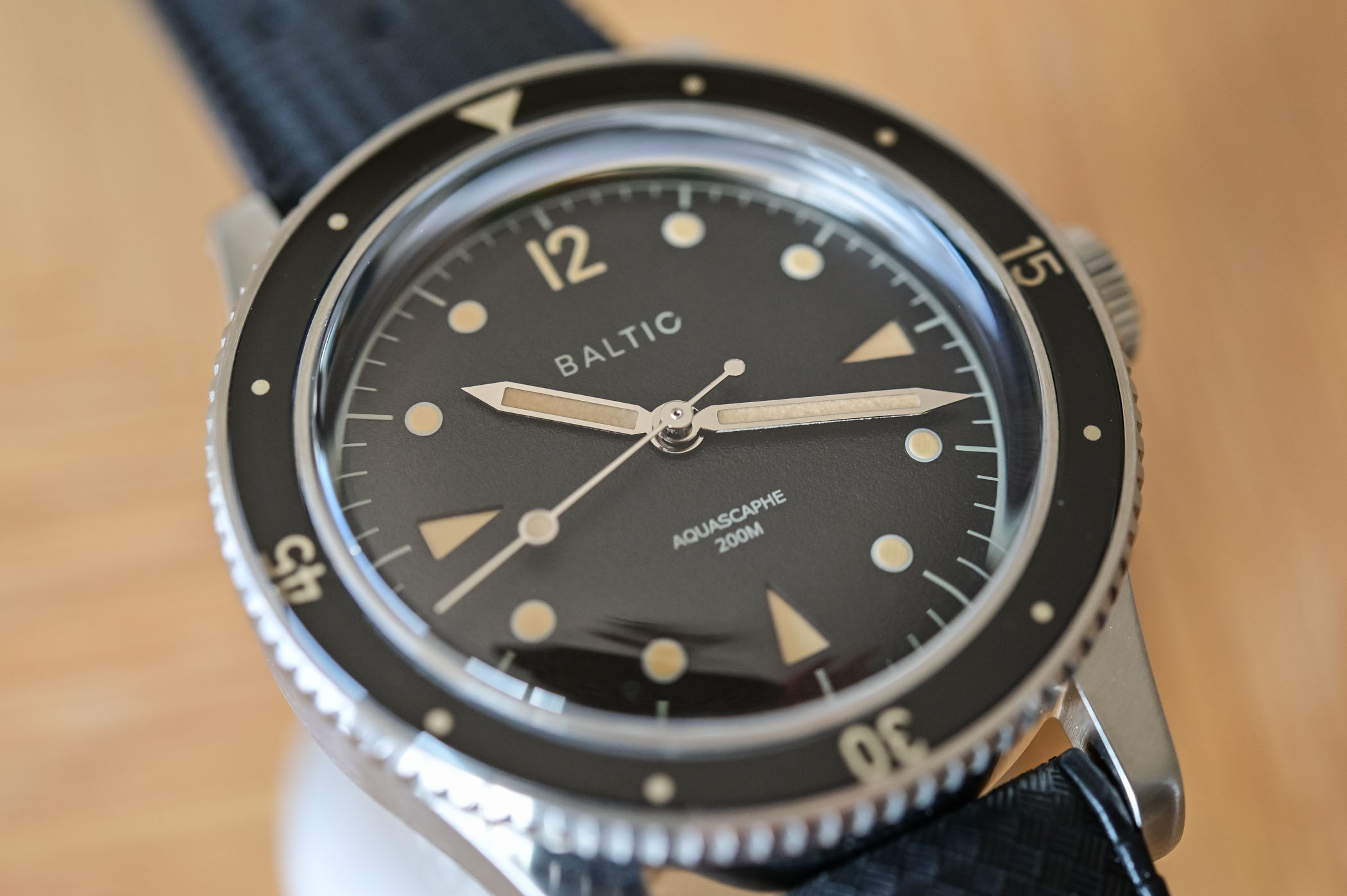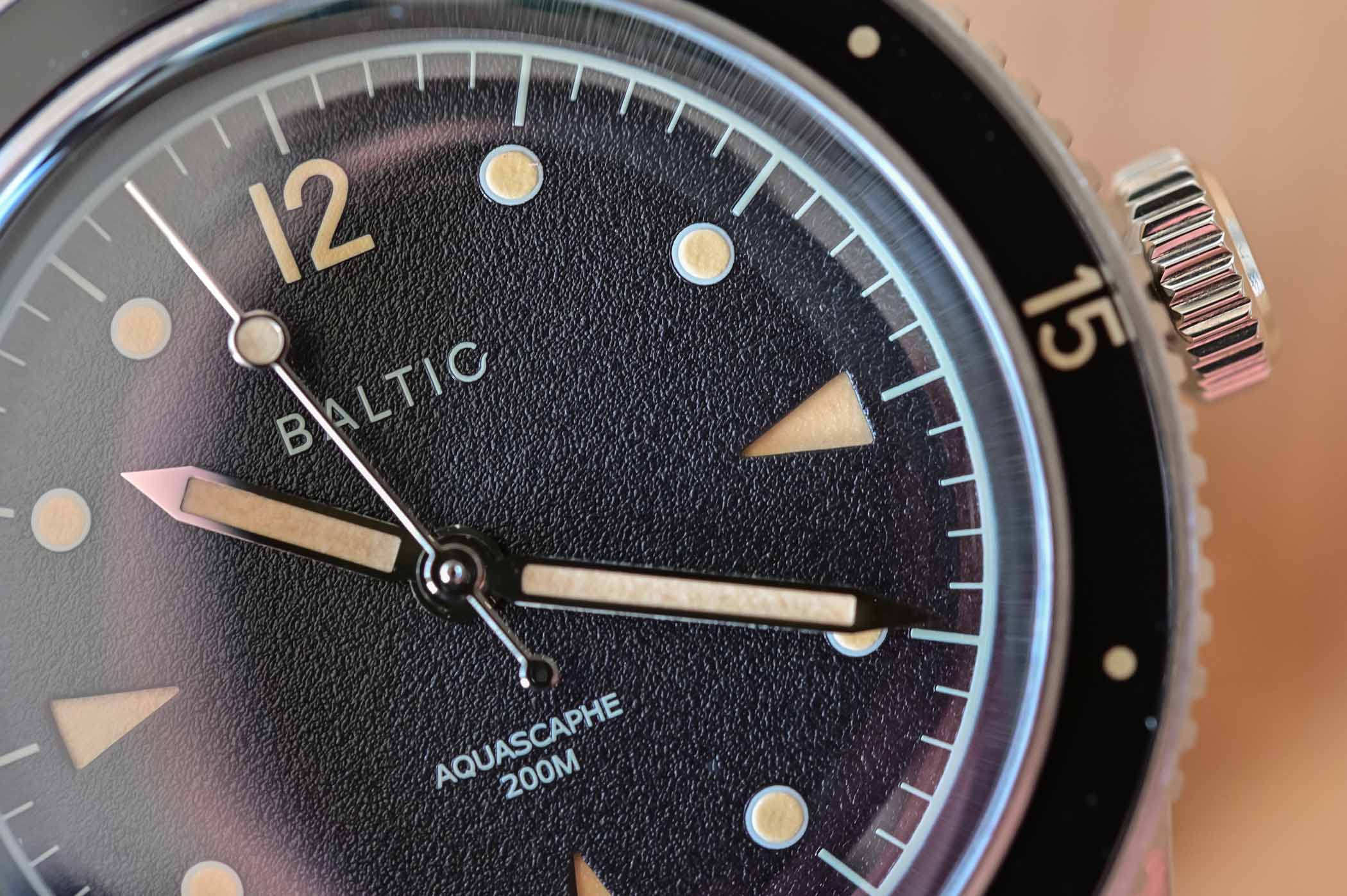 Just like the inaugural collection, the Baltic Aquascaphe Diver doesn’t hide its vintage inspiration. It has clear references to some of the greatest early dive watches – think Fifty Fathoms or Submariner – but it manages to have an identity of its own. Etienne, as a seasoned collector, is more than familiar with the codes of vintage-inspired watches but also knows that most watch enthusiasts can’t actually access these famed, sought-after models. Baltic is here to give the taste, without the expensive bill.