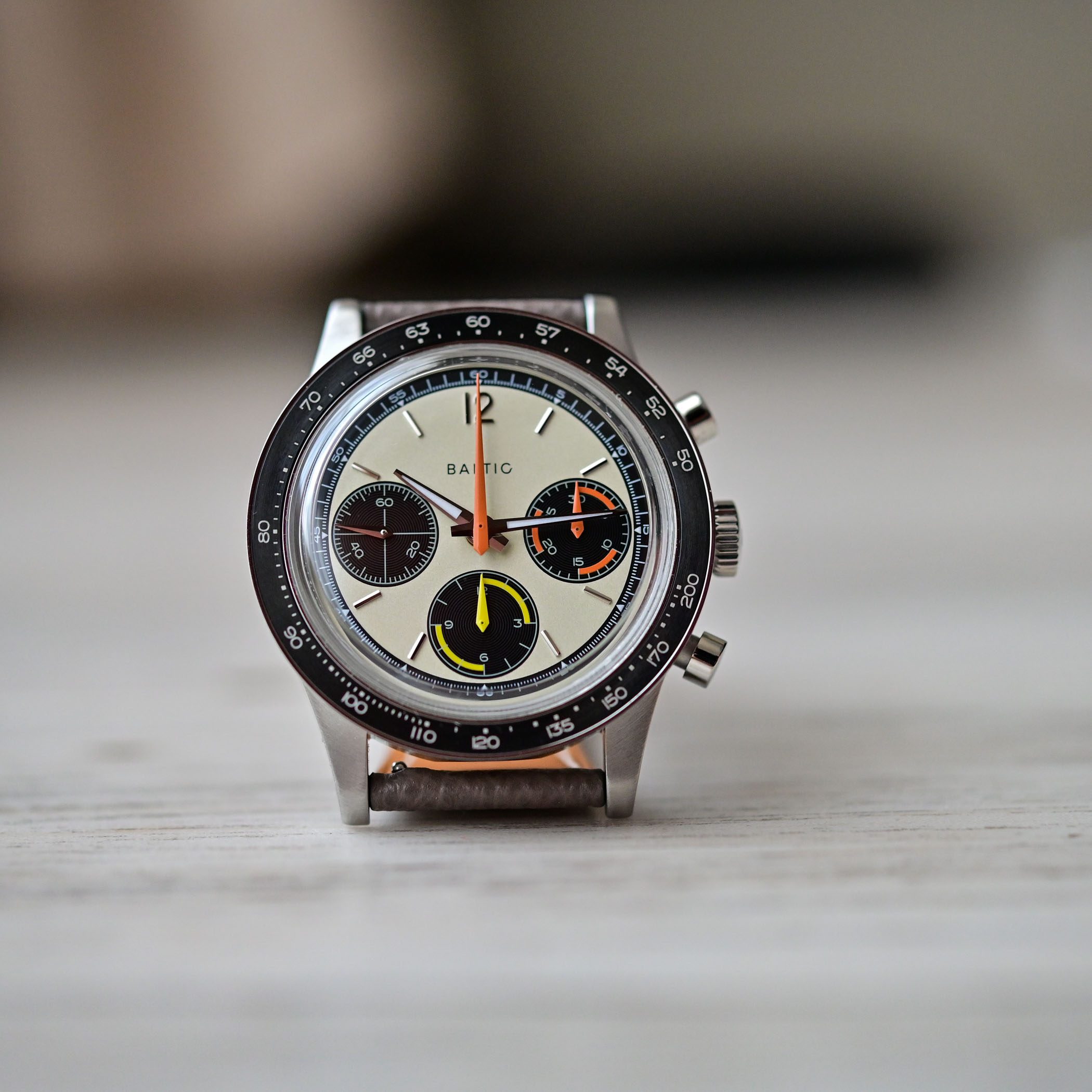From what used to be a young microbrand launched on Kickstarter, Baltic has now become a far more established brand, creating more mature models with serious design… and often a well-controlled vintage twist. For long, watches by Baltic have been powered by Asian movements (to the exception of the GMT) but now comes something that clearly plays in a different league; a hand-wound chronograph with Swiss movement, made together with a world-renowned historic motor racing promoter, with a cool, vintage-inspired design and paired with equally cool racing stopwatches… This is the new Baltic x Peter Auto Tricompax Special Edition and we tell you all about it.