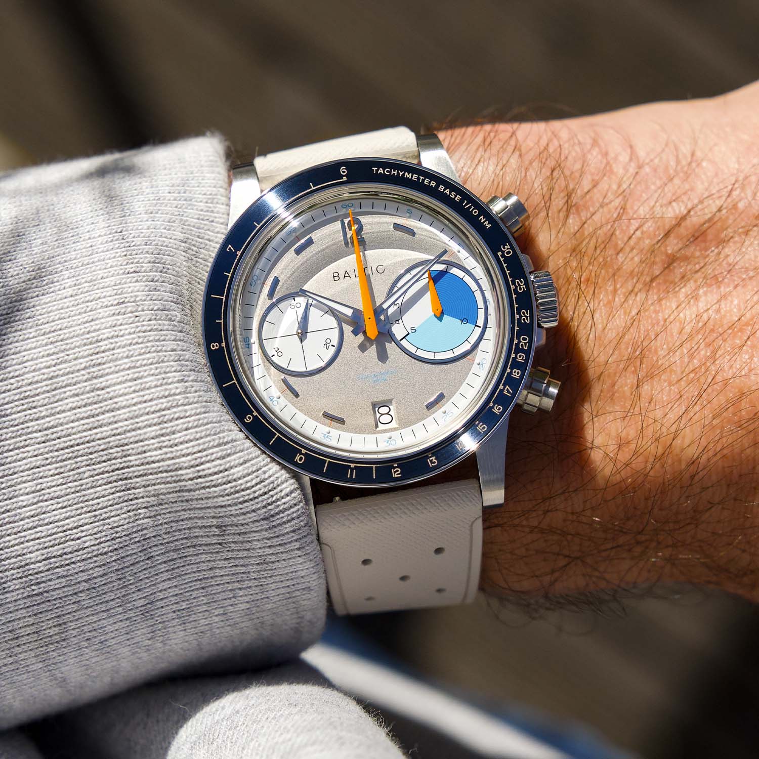 Besides their accessible dress watches and fairly-priced yet robust retro-inspired divers, Baltic has long been all about race cars and vintage motorsport competitions (not really a surprise when you know the founders’ passion). The connection between cars and watches is obvious, and Baltic materialised it with several Tour Auto-themed models, the latest in line being the Scalegraph Tour Auto 2025. An evolution of the Tricompax collection, the Scalegraph comes back this year in a new regatta-themed version, as Baltic becomes the Official Timekeeper of the Transat Café L’Or.