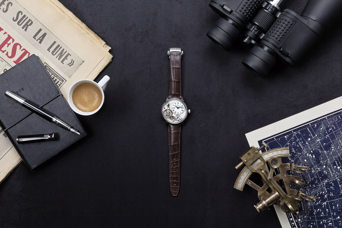 Masterpiece Gravity comes in two execution: a 43 mm case in either stainless steel or stainless steel with an anthracite PVD finish. It features a “glass-box” sapphire crystal which is slightly domed and magnifies the balance wheel, which gives a great three-dimensional view.