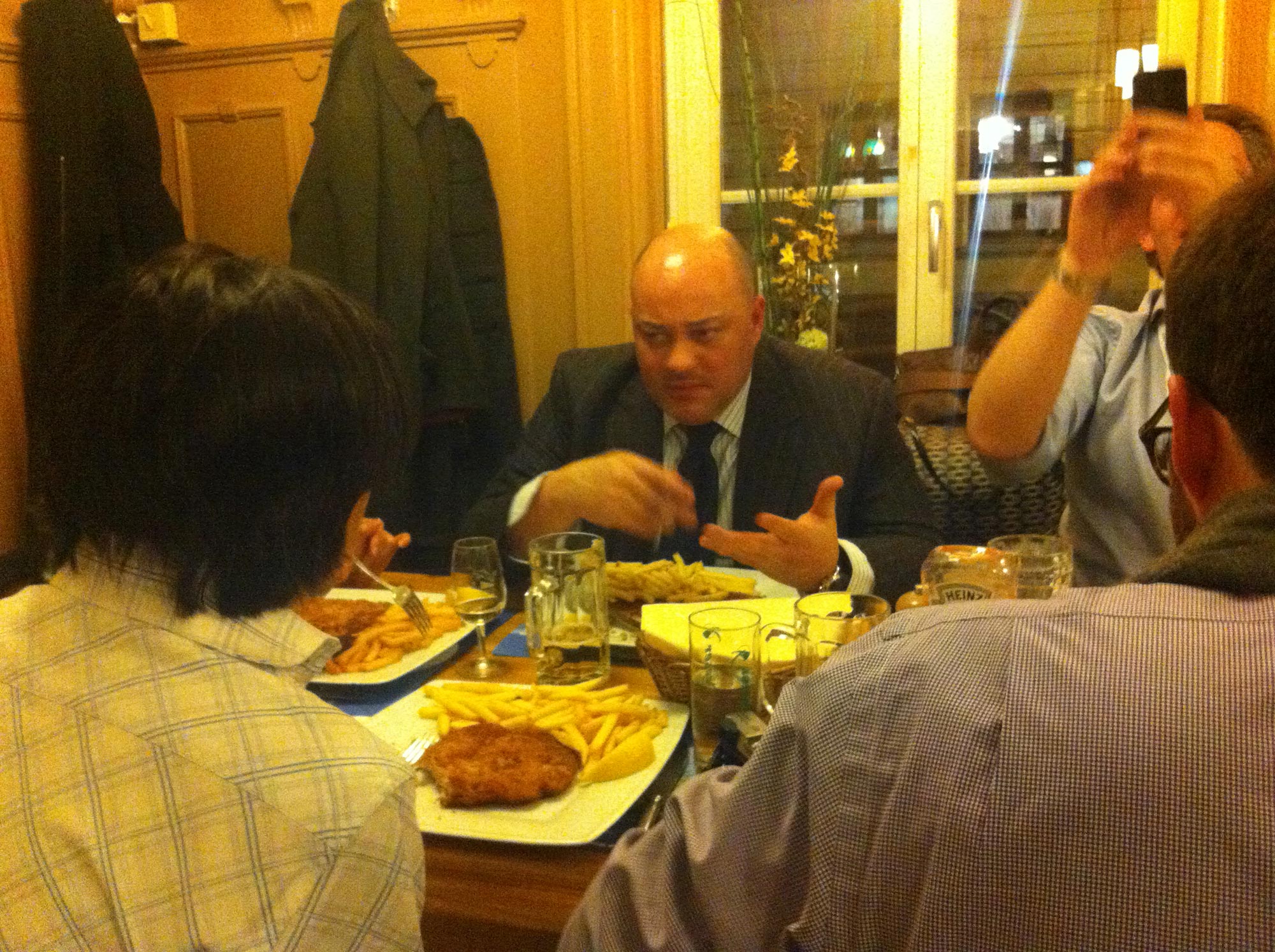 Schnitzel Dinner was definitely something of the best things in Basel. A bounch of great peopels in a interesting Restaurant. Talk and laugh about the same passion and eating a great schnitzel with beer and mayonnaise! I’m sure Geneva wil be an interesting place to keep this tradition alive. Thanks to Frank and the whole team for everything!