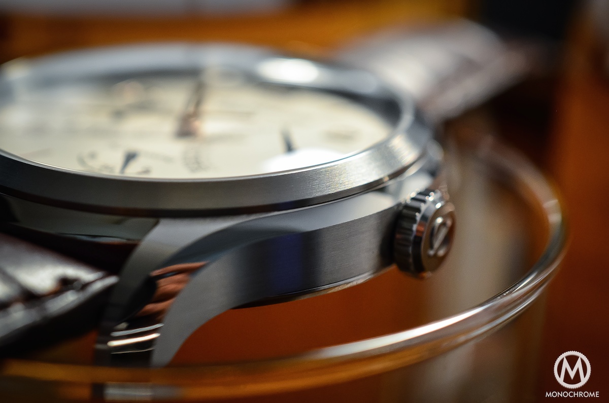 The strap is made of brown, quality alligator leather with square scales and a matching stitching. It comes with a triple folding clasp with security push-pieces. Once again, nothing conspicuous, but an appealing excellence. Another of those details worth noting is the curved shape of the strap between the lugs, which is both elegant as well as rare in this price range.