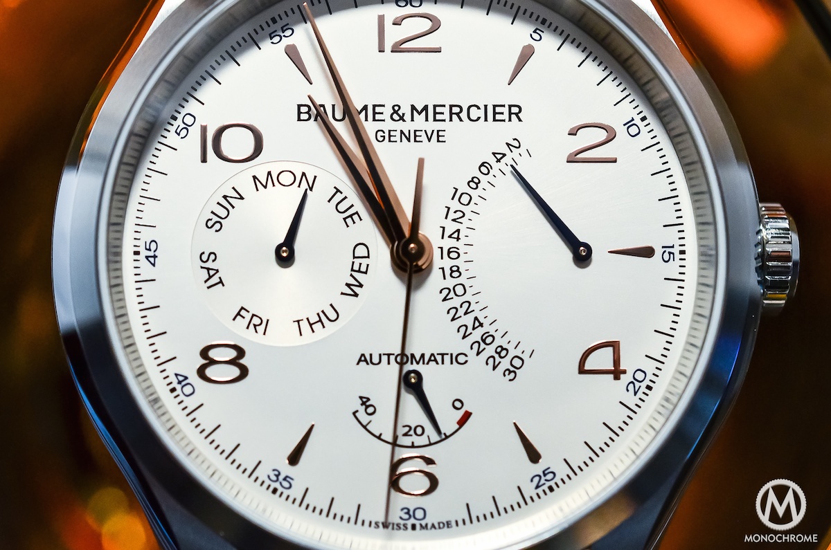 Because we love watches and complications here at Monochrome-Watches, we chose to review this Clifton Retrograde Date, a watch of reasonable cost that still features a complicated layout. It shows enough originality and indications on its dial to please any watch enthusiast and to create the illusion of a very complicated watch. Once again, the goal of the Richemont Group with B&M is not to compete with Breguet or Vacheron-Constantin, but to please a large audience, from young active men to more discreet but established people. Don’t expect any heightened eccentricity or a grand-complication from the brand. Instead, you’ll find elegant, archetypal and very well-made watches suitable for wearing on a daily basis. The Baume & Mercier Clifton Retrograde Date embodies all of these standards perfectly.