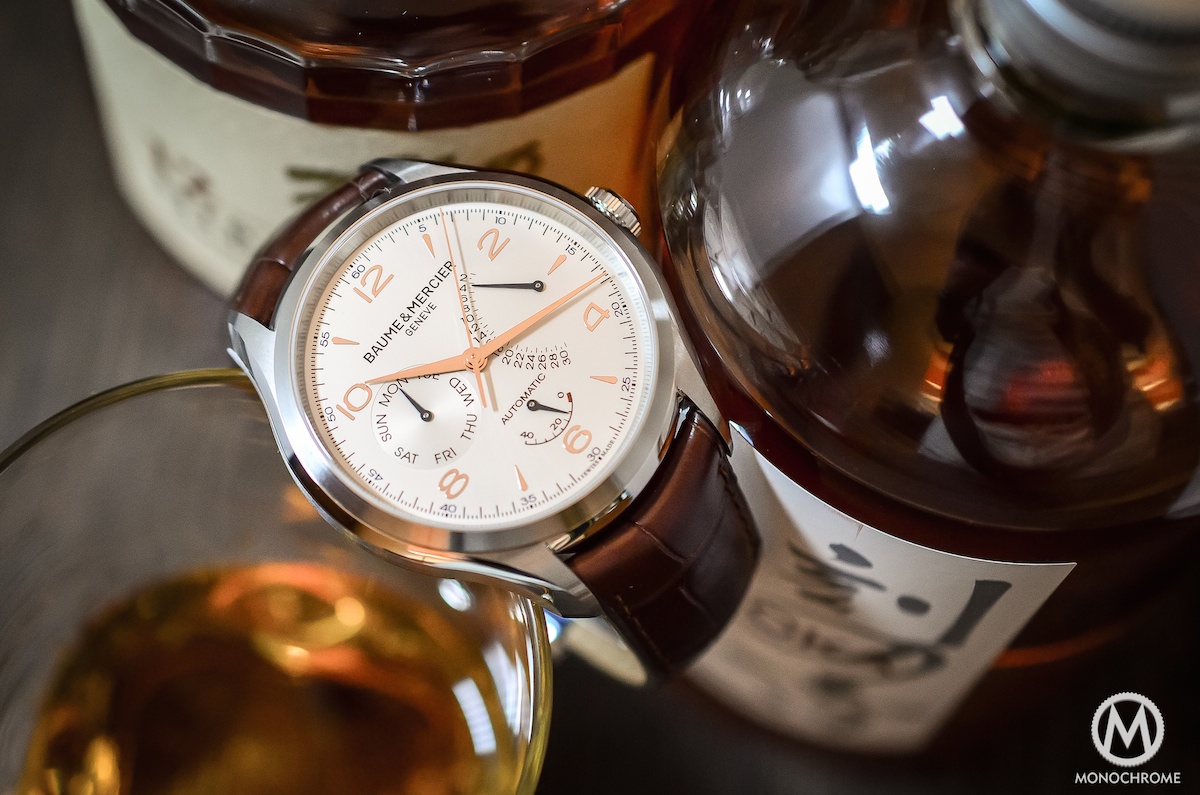 I’ve been wearing this watch during the summer, both with sporty and casual outfits and also during business meetings with formal clothes. And every time, the Baume & Mercier Clifton Retrograde Date found the right place on my wrist. A natural fit for weekends with its large stainless steel case, it was also elegant enough for a suit and tie combo. The association of a brown strap with a bright dial certainly prevents the Clifton from being ostentatious; it practically blends into the crowd. However, lots of small details – the shape of the case, the layout, the hands and indexes – lend it a more refined and high-end feeling. And aren’t details and restraint hallmarks of real luxury?