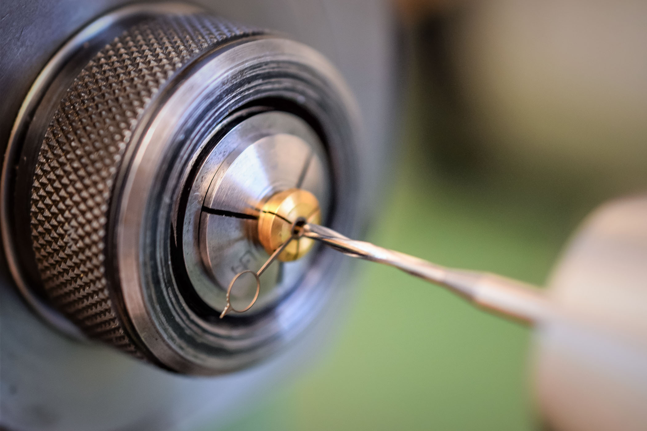 Once the bluing has been performed, the gold hand’s pipe can then be riveted, a meticulous task requiring dexterity and precision.