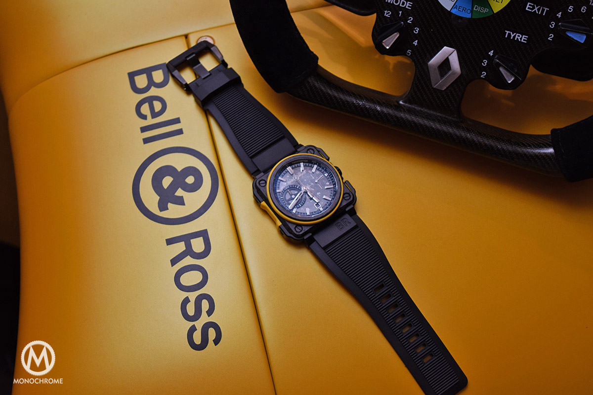 The Parisian brand Bell & Ross is most known for creating aviation inspired watches in a bold, squared style. Of course the collection consists of much more, including round cased watches, like the Vintage collection or the Aeronavale collection. Although most of these are still highly derived from avionics, Bell & Ross is also embarking into the world of automotive and racing-inspired watches. They have teamed-up with Renault F1 as an official timing partner for this year (more on that later in a dedicated chapter of our Watches and Formula 1 series) and now offer the BR-X1 RS16 and BR-X1 RS16 Tourbillon. We’ve had the chance to go hands-on, inside the Renault F1 facility in Enstone, the birthplace of Formula 1.