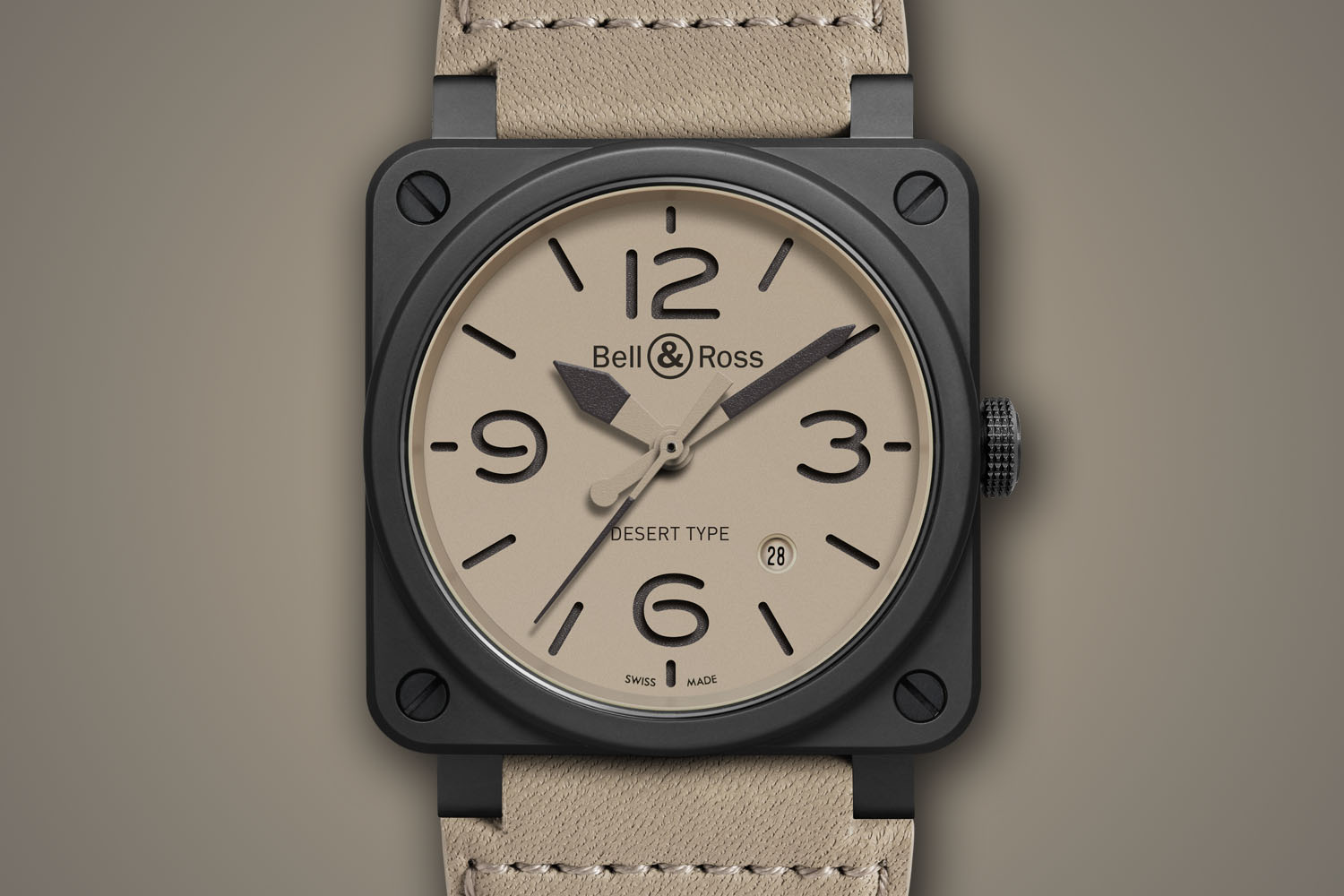 We all know about the aviation roots of Bell & Ross, the strong DNA and a specific design that made the brand successful for some years now – and even more known since the launch of the iconic squared watch, the BR 01, which celebrated its 10th anniversary last year. For the 2016 edition of Baselworld, the brand goes even further in the military inspiration, with watches designed to meet the specifications of air forces operating in warm countries. Strong legibility, sand colour and furtive aspect… here are the Bell & Ross BR 03-92 and BR 03-94 Chronograph Desert Type, new ceramic military inspired watches.