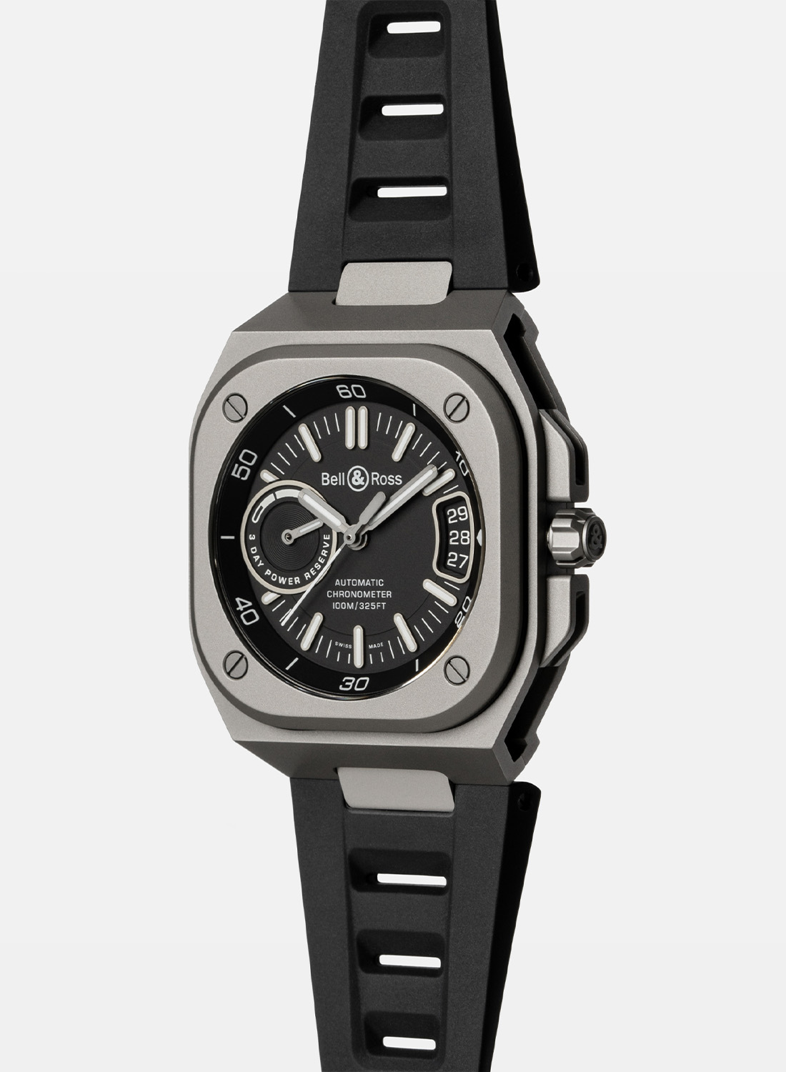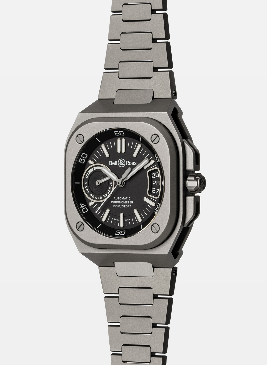 The Bell & Ross BR-X5 Black Titanium on an integrated titanium bracelet with a microblasted titanium folding buckle retails for EUR 9,900. It can also be ordered with an interchangeable black rubber strap with a ventilated central part for EUR 8,900. It is now available from the brand and retailers and is part of the permanent collection.
