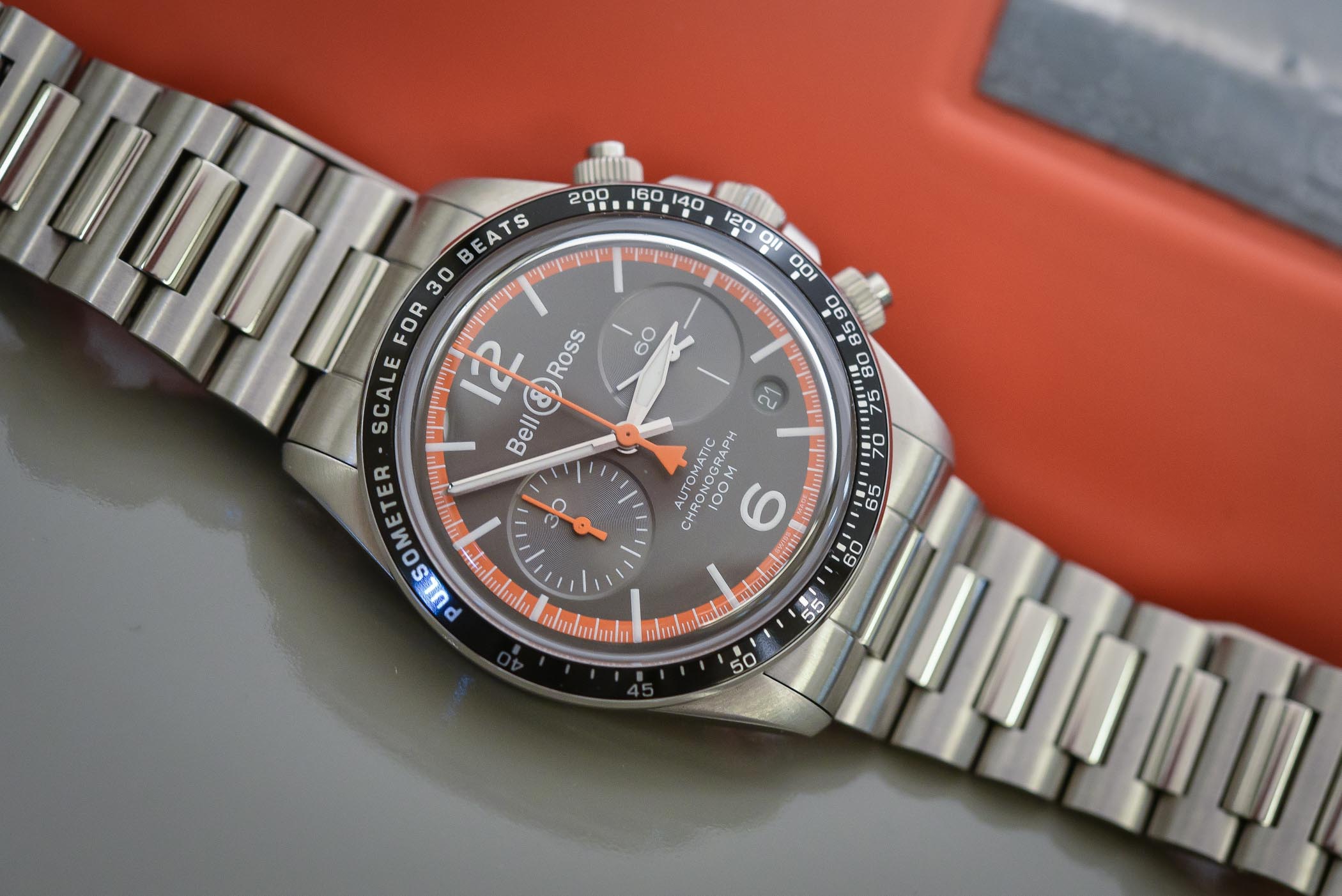 As with the 3-hand version, we have a watch with greater comfort on the wrist and a nice classical feel – emphasized by the rounded shapes and the domed sapphire. Inside the case is an automatic chronograph, calibre BR-CAL.301 (based on an ETA 2894-2). It is available on rubber or steel bracelet and prices go from 3,900 Euro to 4,200 Euro. More details here. Orders can be made directly on the Bell & Ross Website.