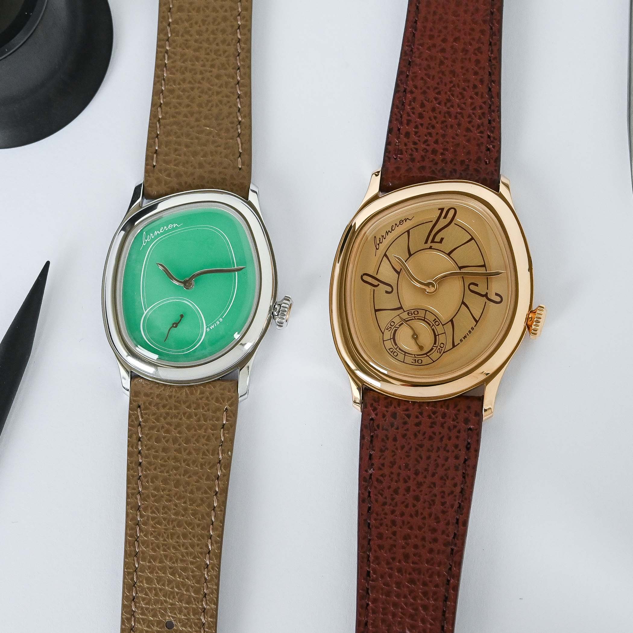 If he had already spent years working for some of the biggest names in the watch industry, Sylvain Berneron truly made a name for himself on the independent watchmaking scene in 2023 with the launch of the first watch under his own brand. The unapologetically elegant and original Mirage – a shaped watch with an asymmetrical design directly mirroring its asymmetrical movement architecture – immediately showcased his creative capabilities and meticulous attention to detail. With its organic, flowing form, the Mirage inevitably recalls Dalí’s melting watches from The Persistence of Memory. Two years after the Mirage 38, following the introduction of a 34 mm version of the model, Berneron presents something entirely different: an annual calendar watch. After weeks of teasing progressive design elements, which we covered in our first article, the time has now come to discover the watch in the metal. With the first prototypes finally available, we could not resist visiting Sylvain Berneron on the heights of Neuchâtel to get hands-on with his latest creation, the Berneron Quantième Annuel.