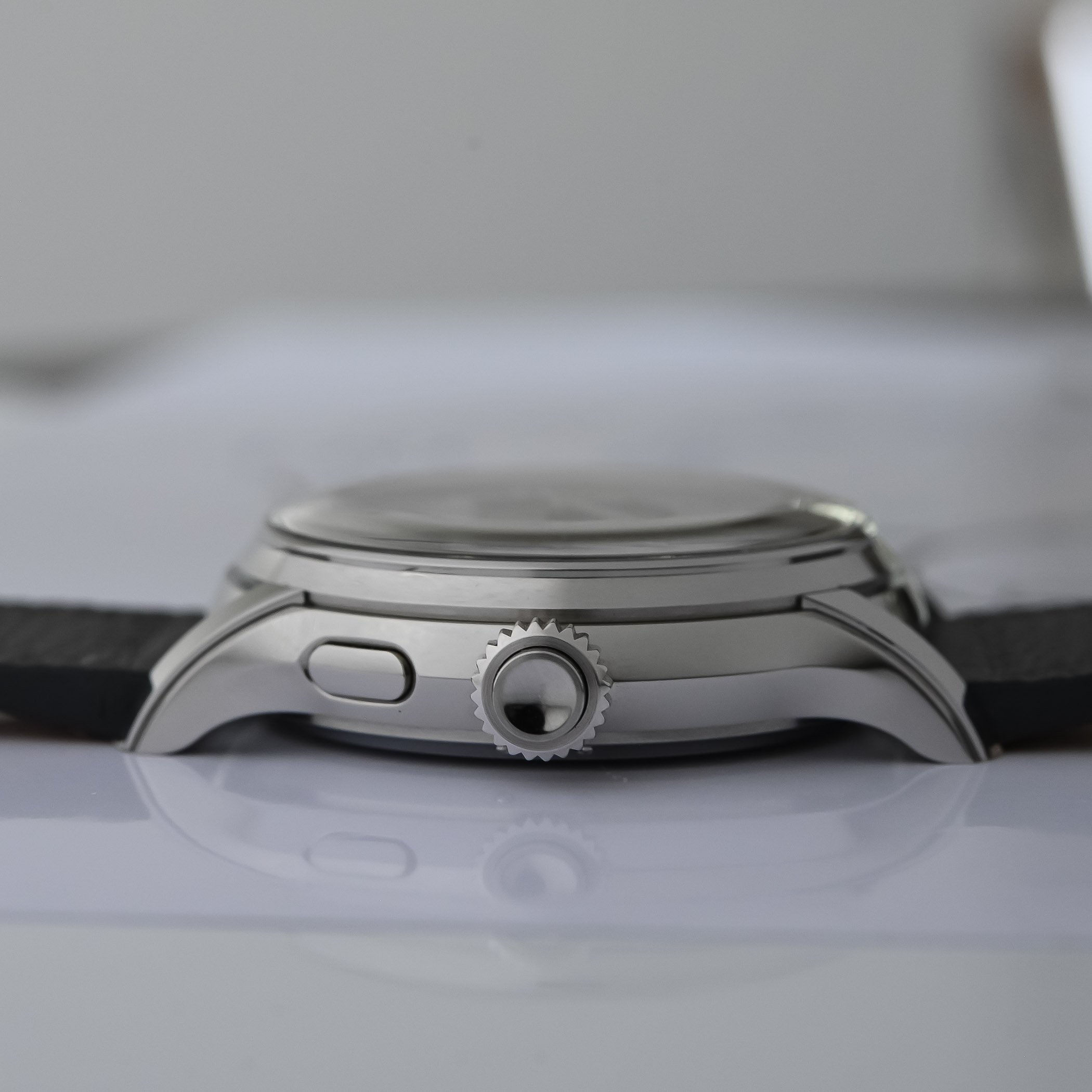 The crown allows you to set the time (position 2) and the date (position 1). Corrections for the hours and the date can be made forward only. The two correctors integrated on both sides of the case are used to correct the day and the month (near the respective windows). As the name of the model suggests, one date adjustment at most is required per year. Unlike standard calendar watches, an annual calendar automatically takes into account the varying month lengths, but it always marks 29 days for February – meaning that 3 corrections are theoretically required on a 4-year cycle. There are no “dead zones” so corrections can be performed at any time.