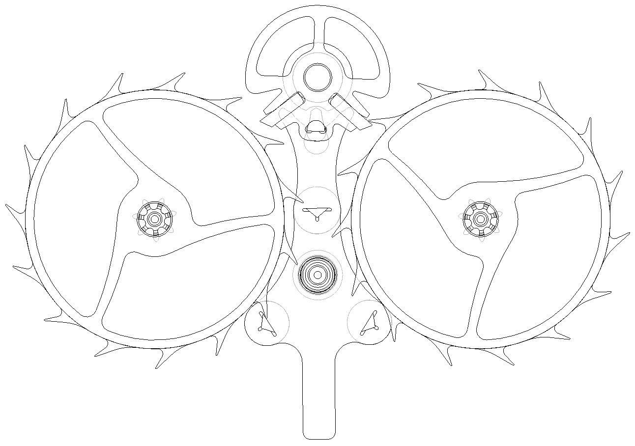 A natural escapement driven by two gear trains and two remontoirs d’égalité.