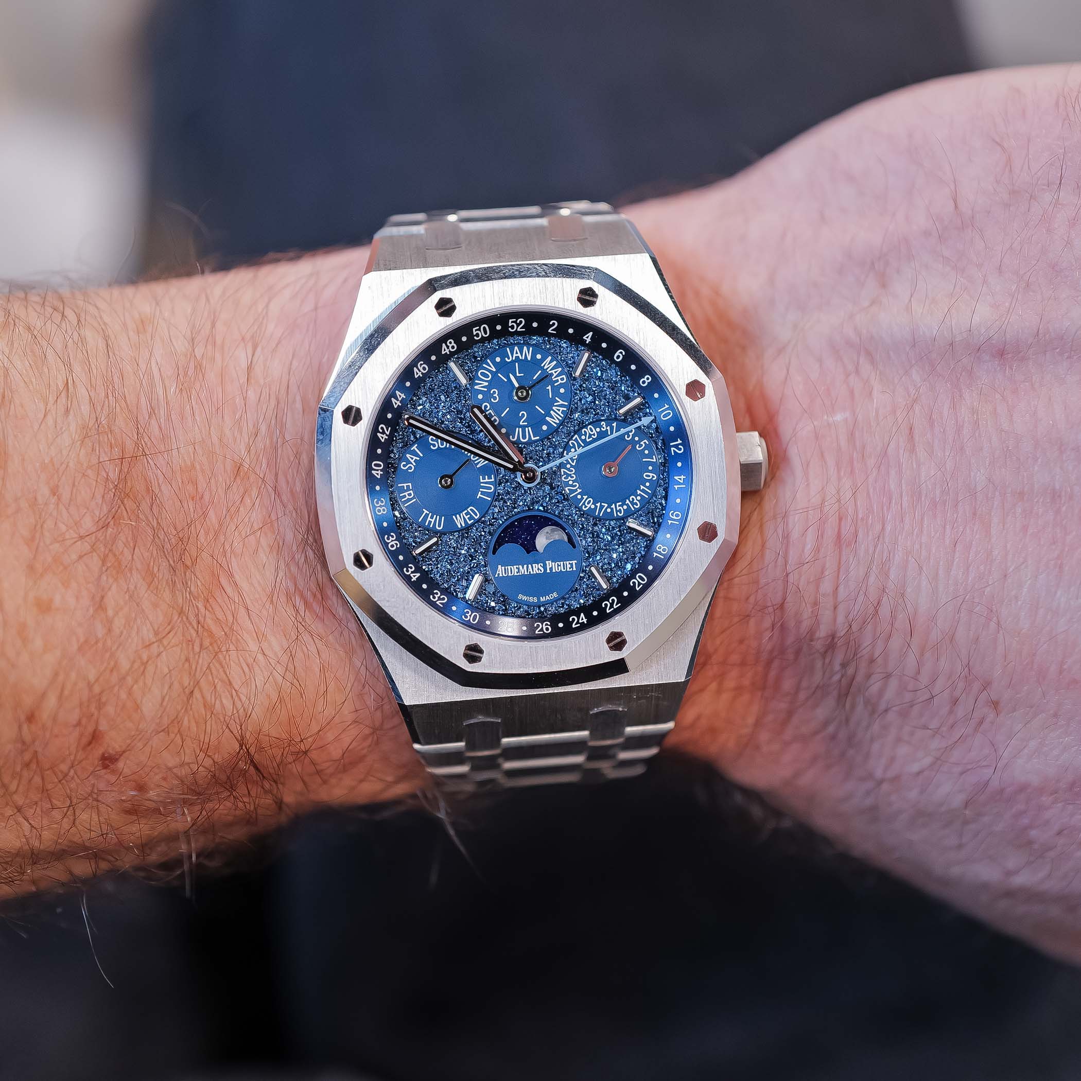 For more details about the Audemars Piguet Royal Oak Perpetual Calendar John Mayer, consult our hands-on article here.
