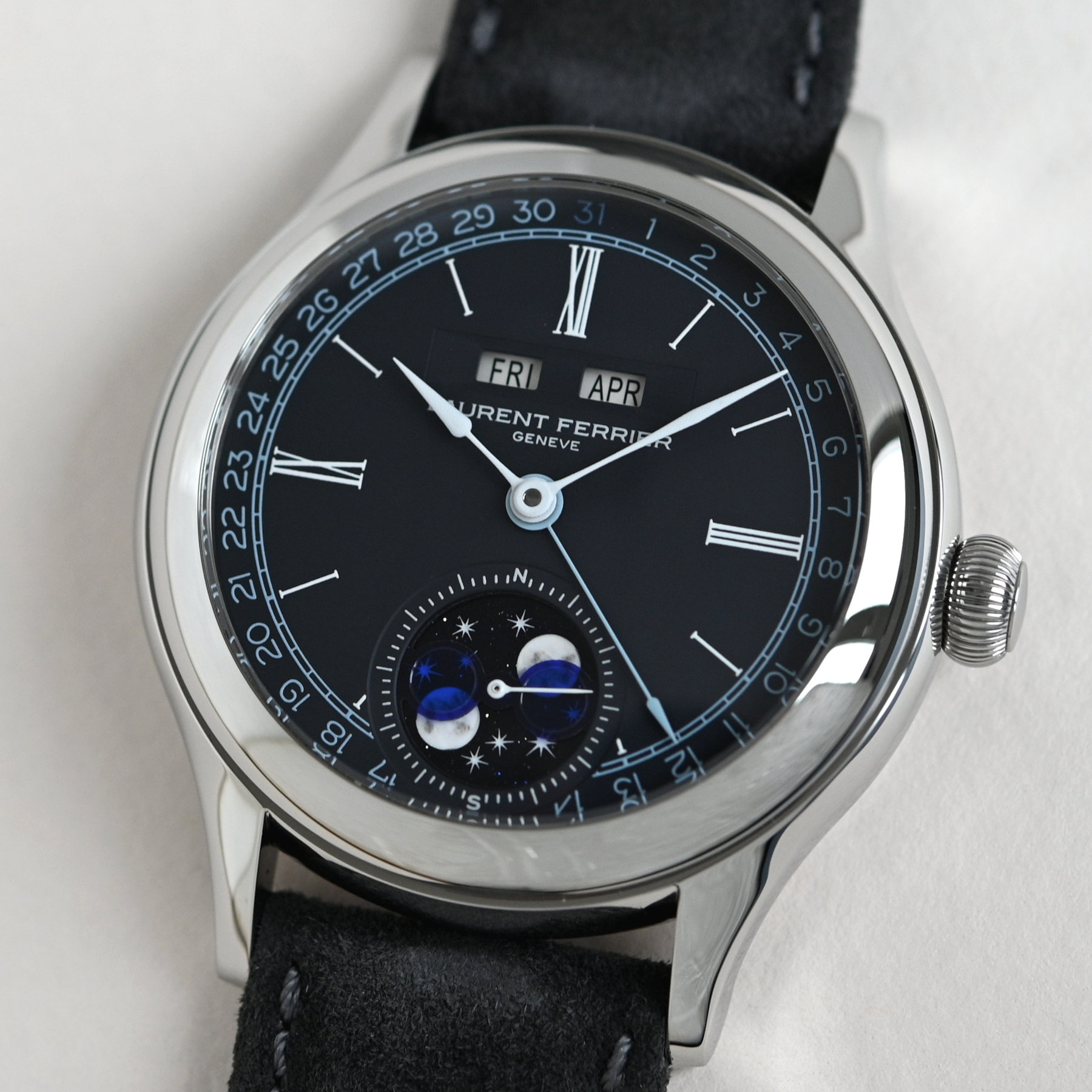 For more details about the Laurent Ferrier Classic Moon Annual Calendar, consult our hands-on article here.