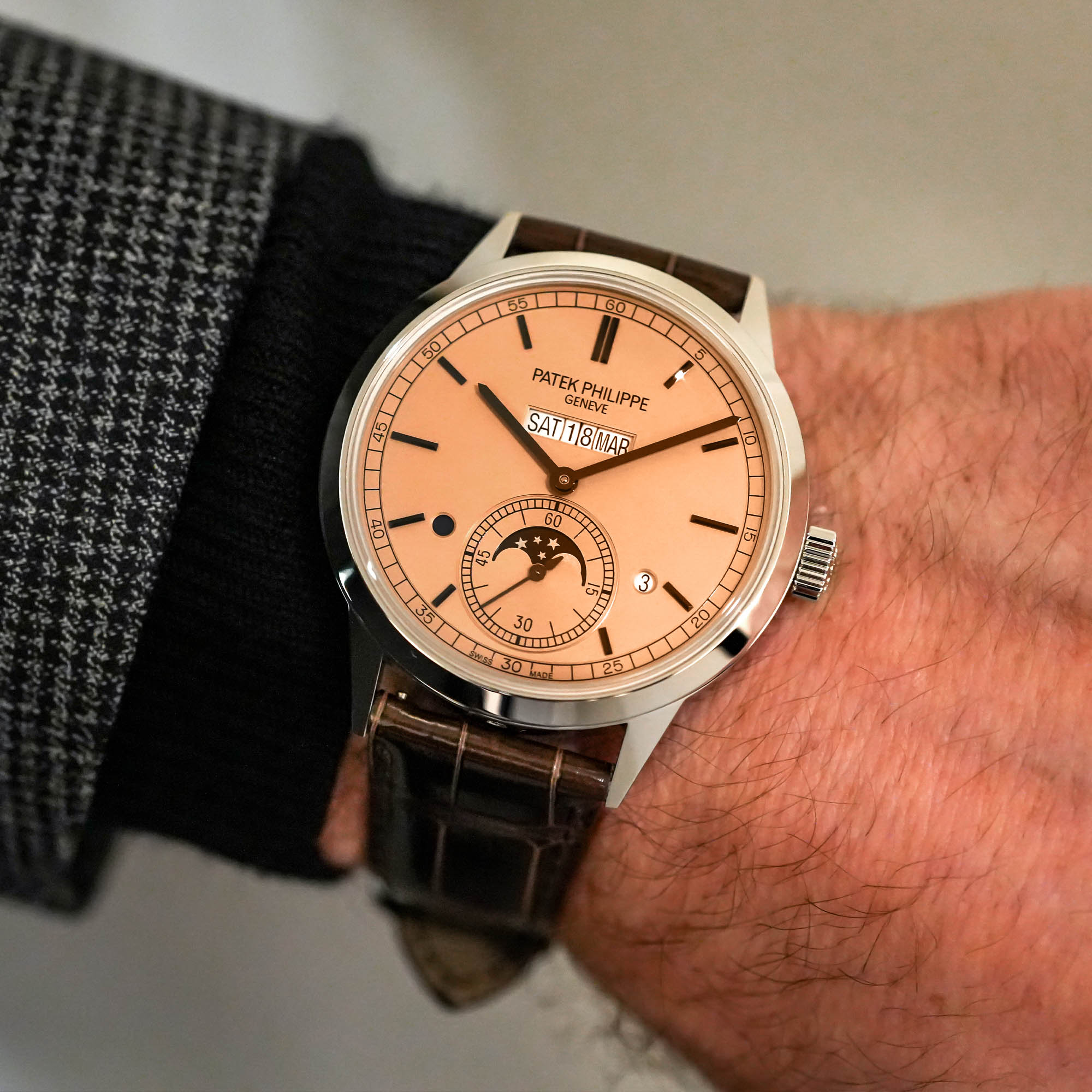 For more details about the Patek Philippe In-Line Perpetual Calendar, consult our hands-on article here.