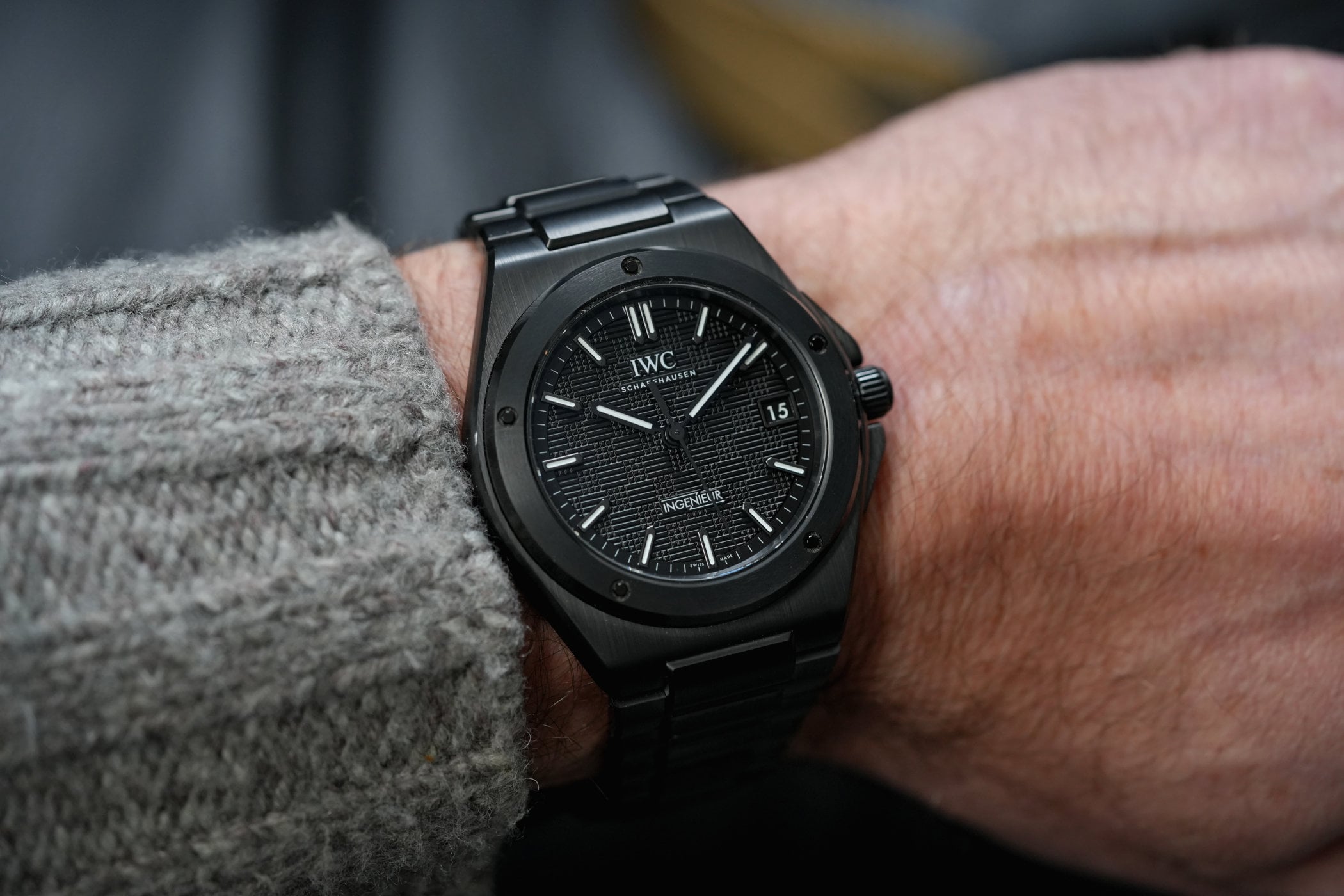 IWC presented its classic Genta-designed Ingenieur with a full zirconium oxide ceramic case and bracelet. The 42mm model retains the signature five-screw bezel and grid-textured dial but appears sharper, stealthier, and decidedly more technical in this attire. The in-house calibre 82110 with Pellaton winding provides 60 hours of power reserve. This is the most muscular and arguably most distinctive Ingenieur yet, demonstrating IWC’s mastery of ceramic construction and finish.