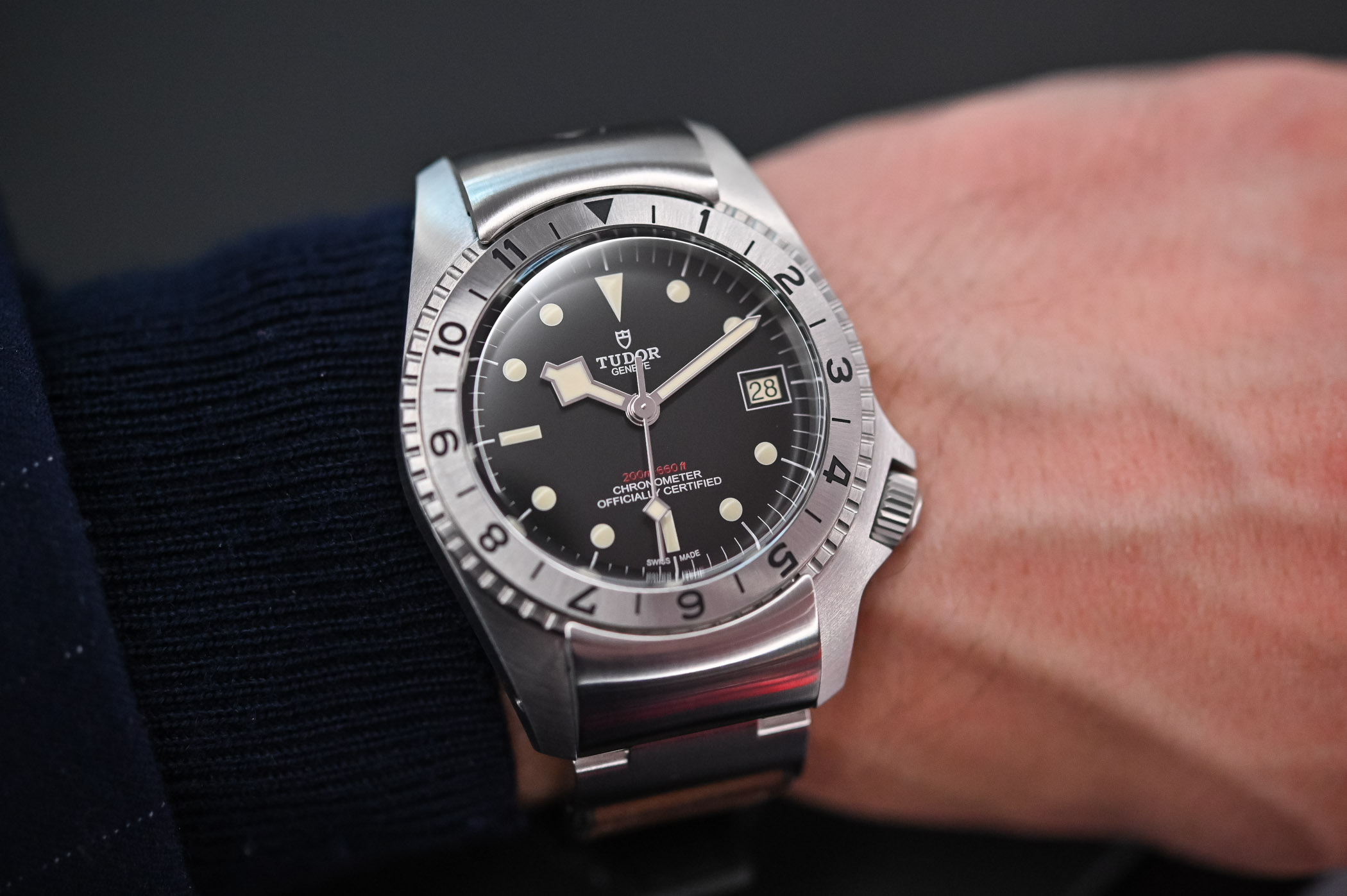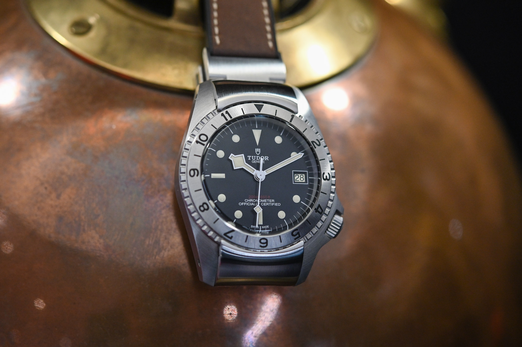 Quick facts: 42 mm steel case – water-resistant to 200m – automatic in-house calibre with hours, minutes, seconds and date – hybrid leather and rubber strap with folding clasp – CHF 3,750 – www.tudorwatch.com