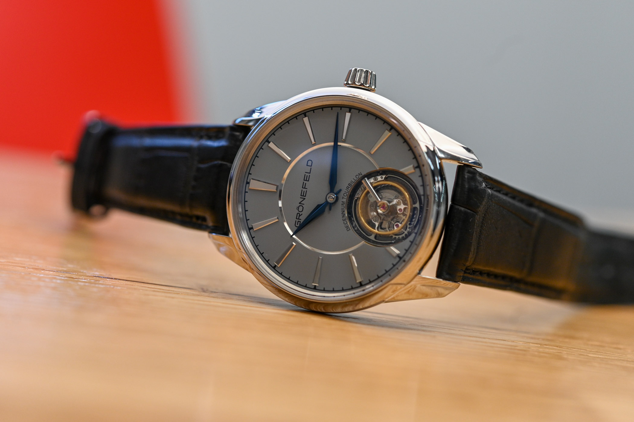 Quick facts: 39.5mm x 10.5mm platinum case – water-resistant to 30m – automatic calibre with hours, minutes and a one-minute tourbillon – stainless steel bridges – in-house developed movement – alligator strap with folding clasp – EUR 145,000 – Limited Edition of 10 pieces – for more information visit www.gronefeld.com