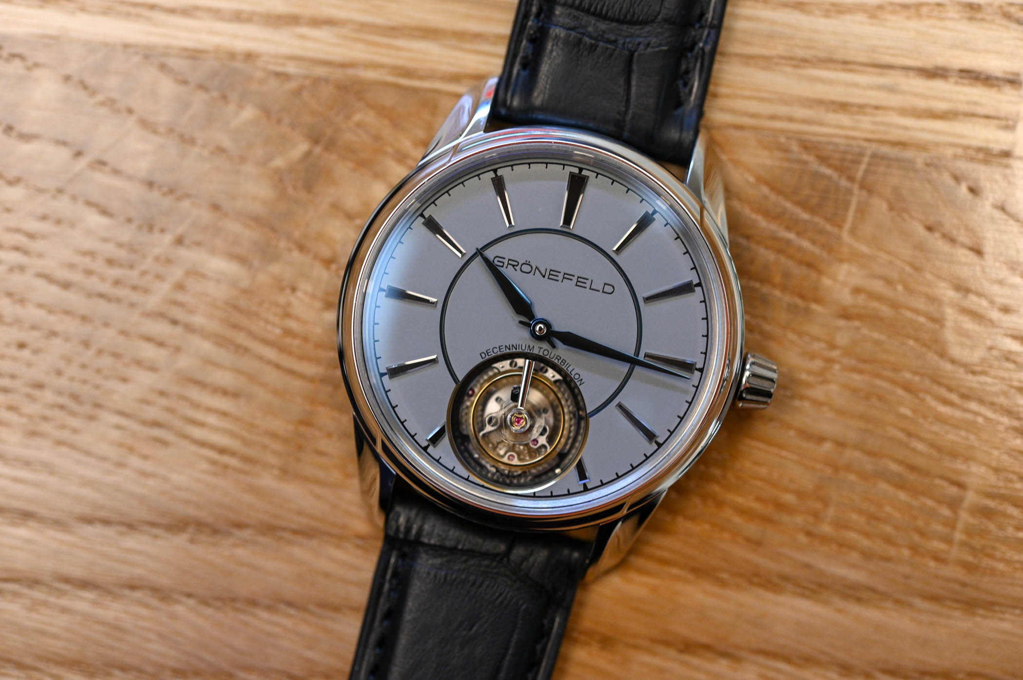Grönefeld… a small Dutch watchmaking company with a long history, is currently led by two brothers, nicknamed the Horological Brothers. Bart and Tim Grönefeld started creating watches with the name Grönefeld on the dial in 2009 and to celebrate their first decade they launch a 10-piece limited edition of a very elegant tourbillon. Named aptly, Decennium Tourbillon, it comes in the elegant 1941 case that was introduced with the launch of their Remontoire. The Horological Brothers are well known amongst collectors for the use of beautifully shaped stainless steel bridges and the magnificent level of finishing. Never shy to add a spectacular complication, they’ve earned their place among the greats in watchmaking.
