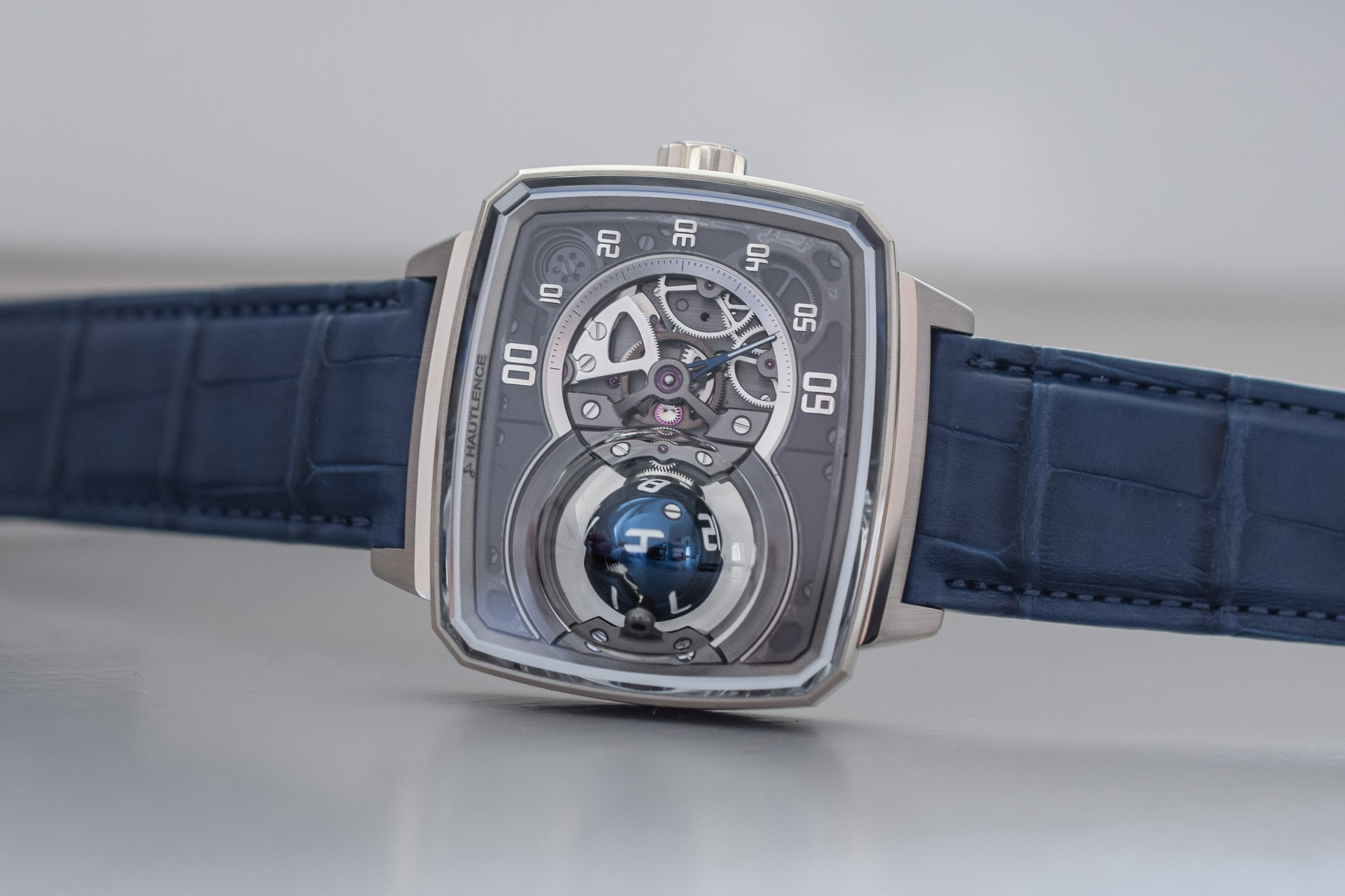 With its newest creation, Hautlence goes back to its roots. The brand founded 15 years ago, in 2004, with a TV-screen case featuring a jumping hour display and retrograde minute hand. This has become the brand’s iconic and unique time display and after being astray for some time, the La Chaux-de-Fonds based brand seems to have found its way back to its origins. Although the ‘usual’ jumping hour display has now been replaced by a novel hours display, with a spinning sphere rotating on three axes, the retrograde minute hand remains in place.