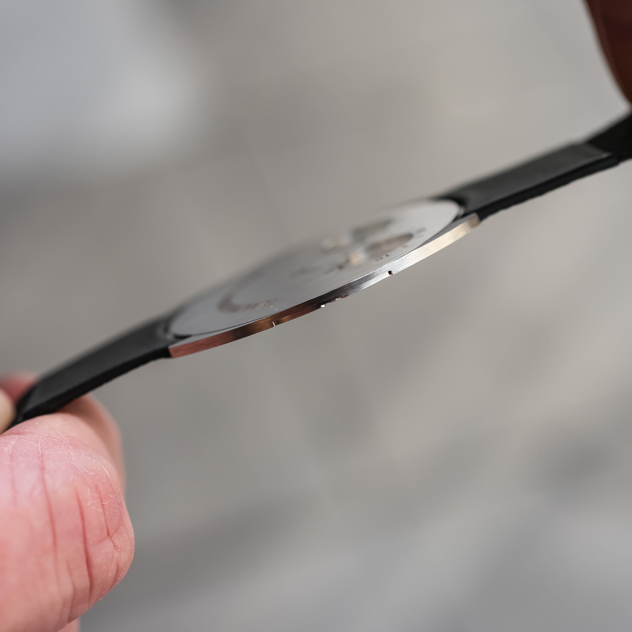 While we’d love to mention the absolutely gorgeous 1860 Blue dial in this article, due to its compact case, guilloche dial and highly finished movement, the focus being on thinness, the L.U.C XPS Prussian Blue is the one making the list here. A follow-up to the Forest Green model released in 2024, this new version retains the same slenderness of 7.2mm, its sector layout for the dial and handsome micro-rotor inside. One of the most attainable models in the L.U.C collection, it looks and feels superb, even though we would have preferred its steel case to be a little more compact, at 38mm instead of the current 40mm diameter. That said, it is a truly handsome watch with an ultra-thin profile and important movement inside, for a price that’s quite reasonable.