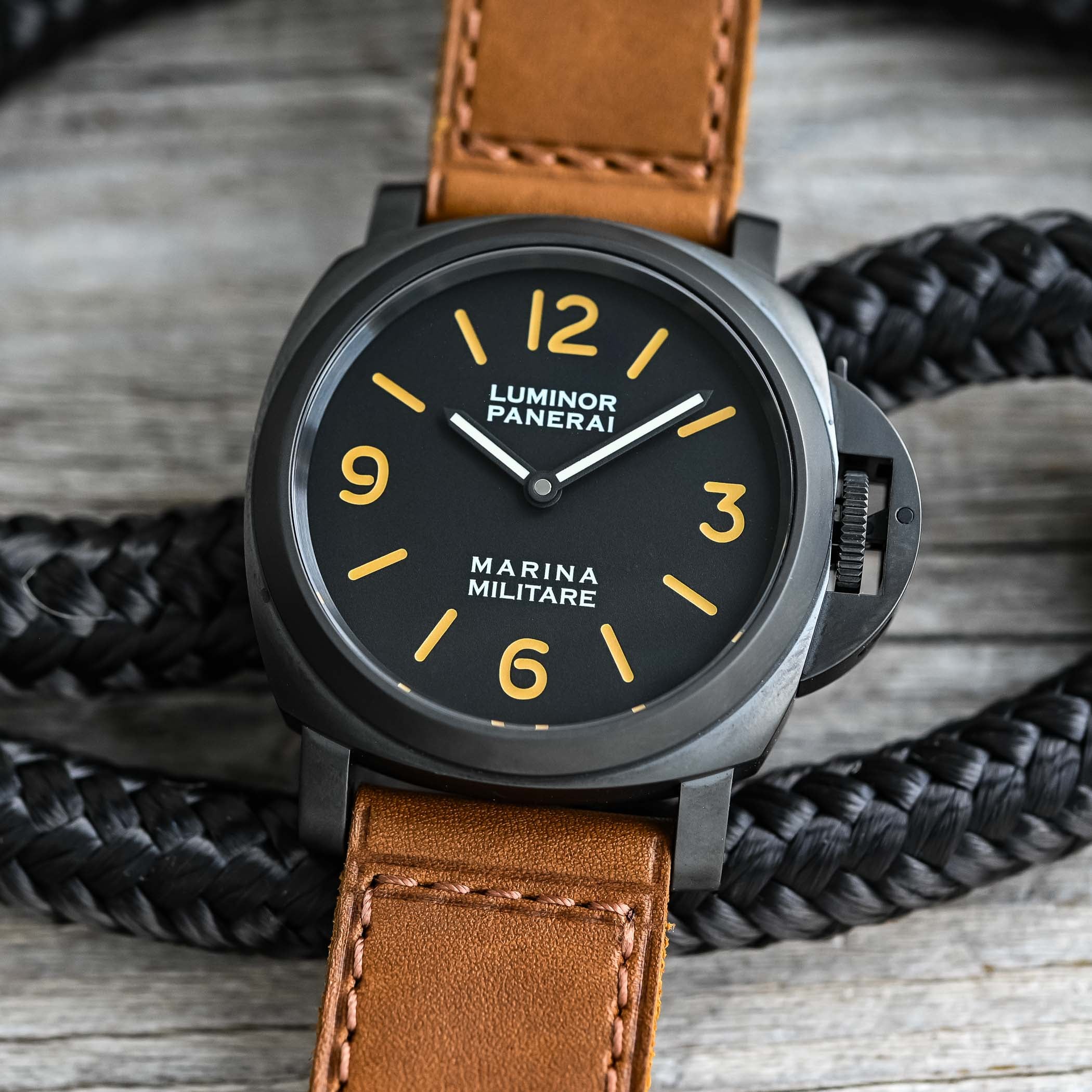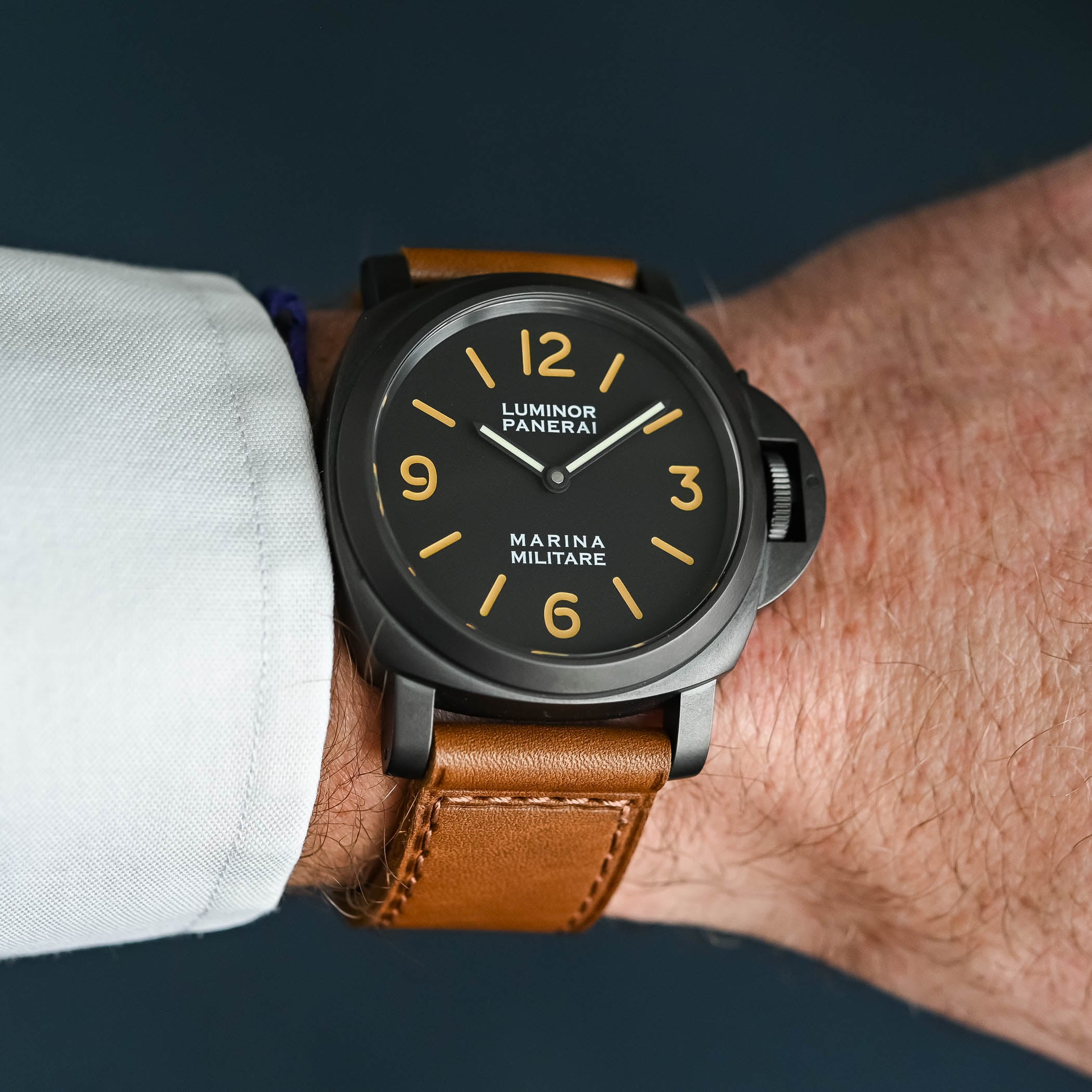 If you’re looking for a military watch with top brass credentials and a great story, look no further. As one of the first watches available to civilians after decades of top-secret military commissions, Panerai released the Luminor Marina Militare 5218-202/A in 1993. With its 44mm blackened steel case, matte black dial and ETA Unitas movement, the few remaining Marina Militare 5218s that weren’t supplied to the Italian Navy were sold privately and have become the stuff of collectors’ dreams. Thirty-two years later, Panerai unveiled a faithful reedition of its military grail watch with updated specs. The 44mm Luminor steel case is now coated in black DLC with a sandblasted finish, features the hallmark crown protection device, and is water-resistant to 300 metres. Like the degraded tritium of the 1993 Luminor that took on a dark orange hue, the new Luminor features recessed indices and numerals treated with dark beige Super-LumiNova. The Luminor is powered by a manual-winding calibre with a robust 72-hour power reserve. If you’re hunting for a stealthy underwater watch for your next top-secret mission, take note that the Luminor Marina Military PAM05218 is available exclusively upon request.