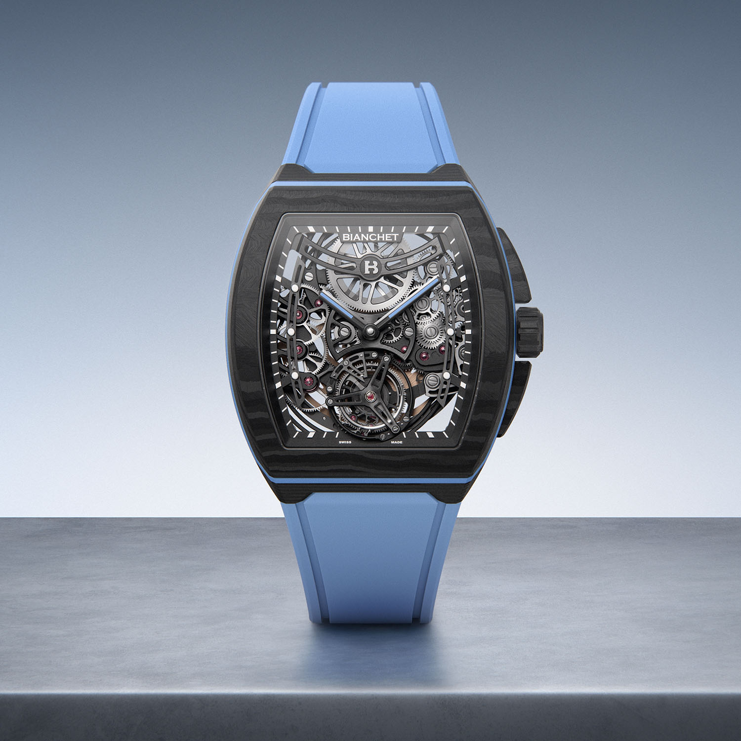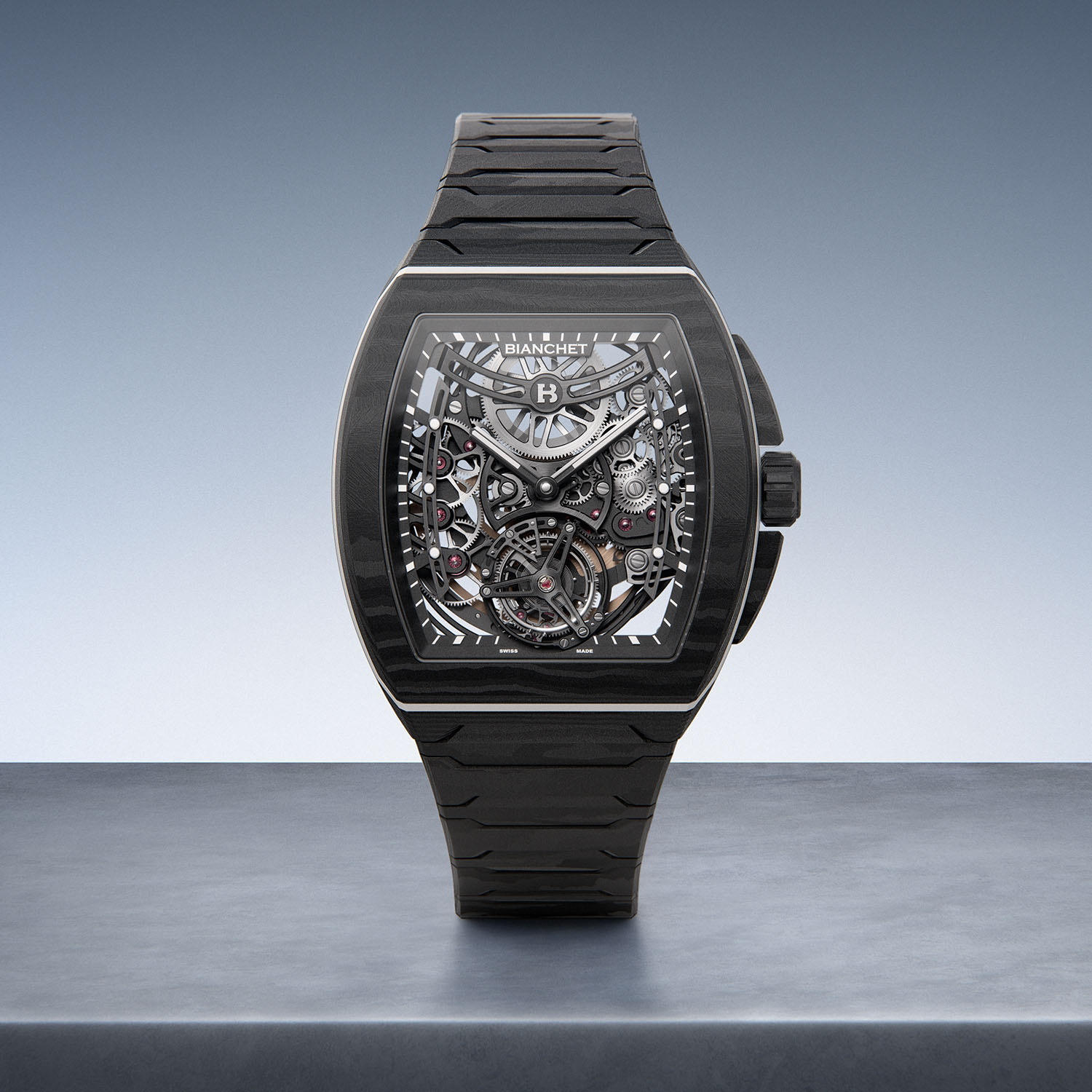 Bianchet, an independent watchmaking brand founded in 2021 and based in La Chaux-de-Fonds, has quickly established a distinctive identity with its modern tonneau-shaped designs. Earlier this year, the brand introduced the B 1.618 UltraFino, a milestone model release that brought several firsts: an ultra-thin case, a metal bracelet, and an automatic movement. Now, to mark the beginning of the Geneva Watch Week, the family-owned company unveils the next evolution of the UltraFino series – a timepiece crafted from monobloc carbon, complete with a matching carbon bracelet.