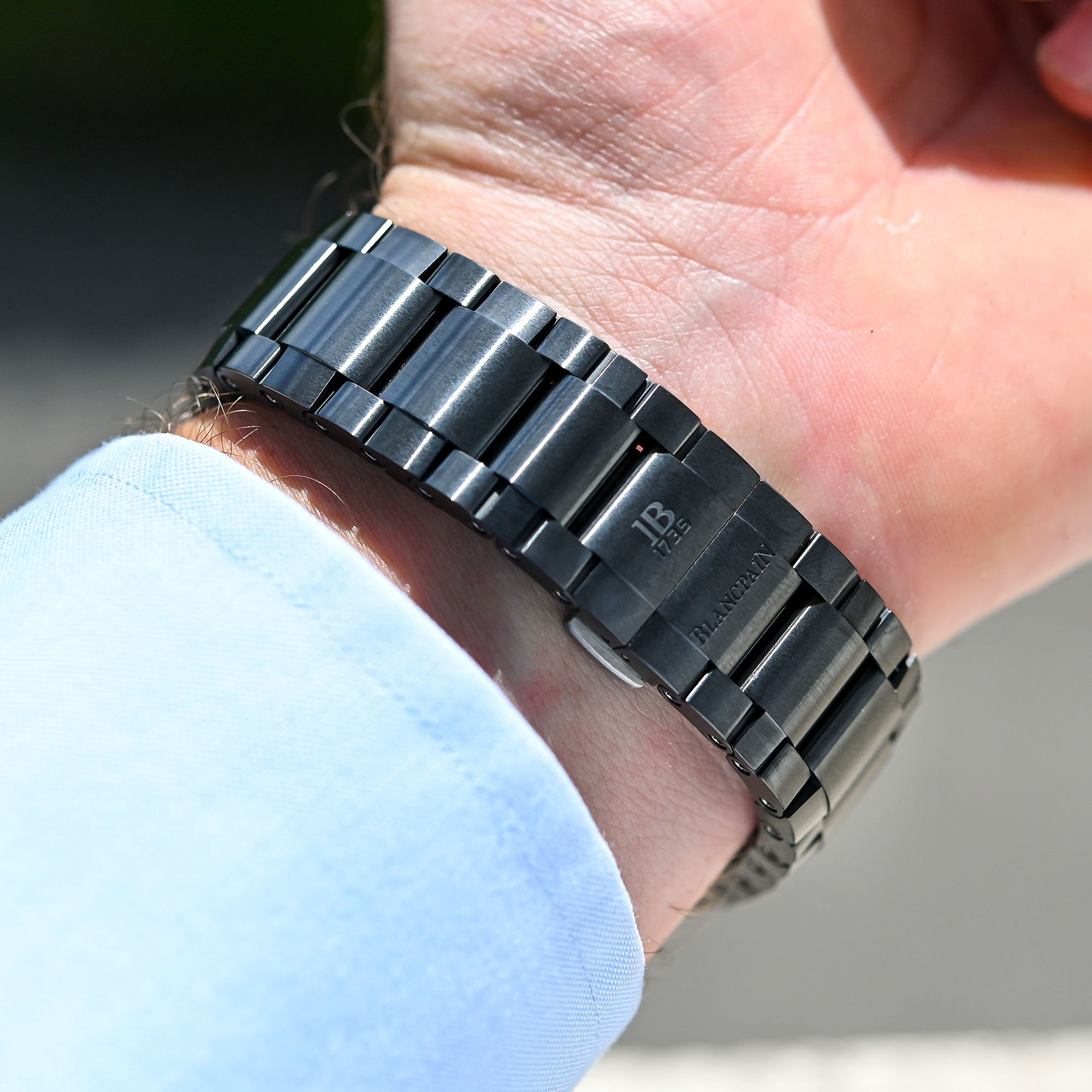 While Blancpain is no stranger to using ceramic for the case of its Bathyscaphe, what’s new this year is the addition of a ceramic bracelet. It’s been long known that creating a solid, well-designed bracelet is a complex task, often more complex than a case – something that is often outsourced to suppliers. Making a ceramic bracelet is nothing short of complex, specifically when one wants to respect the shape of that used for a metallic bracelet.